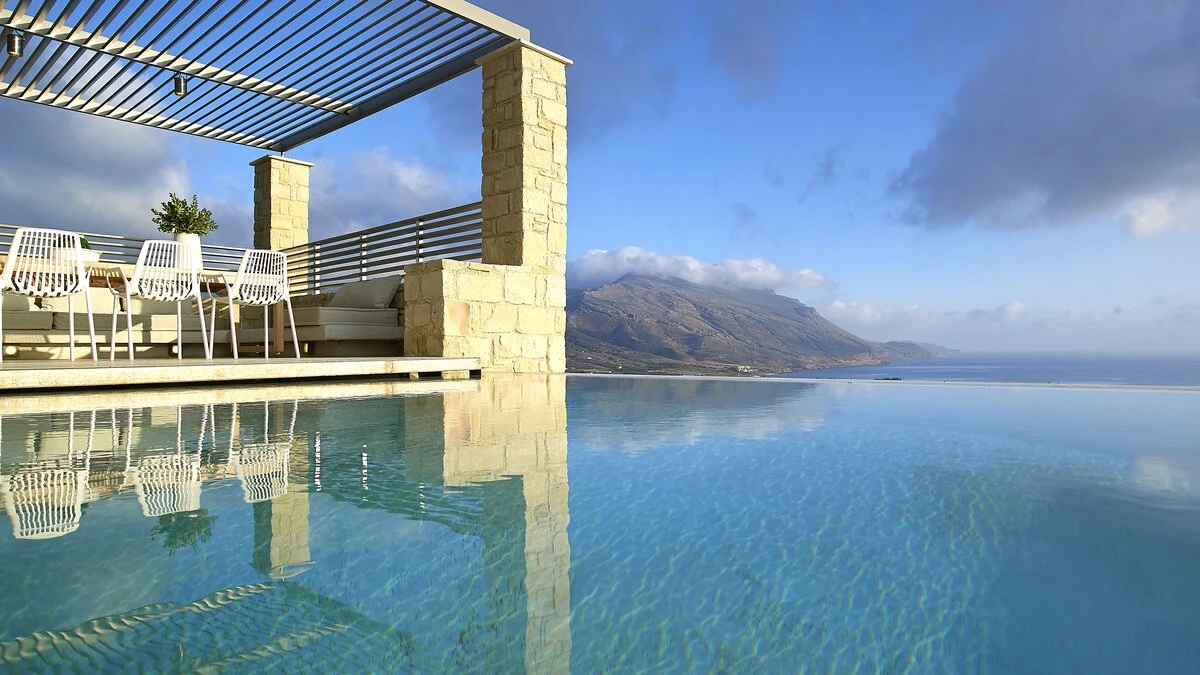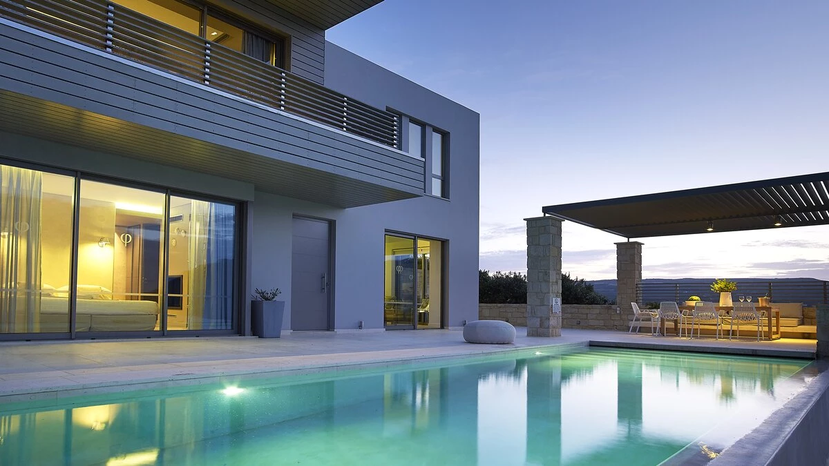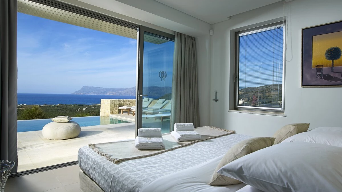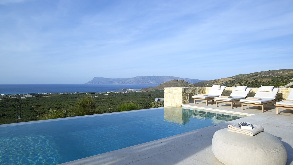 With its own pool, spa and fitness room complementing contemporary comfort, this luxury villa in Cre... -