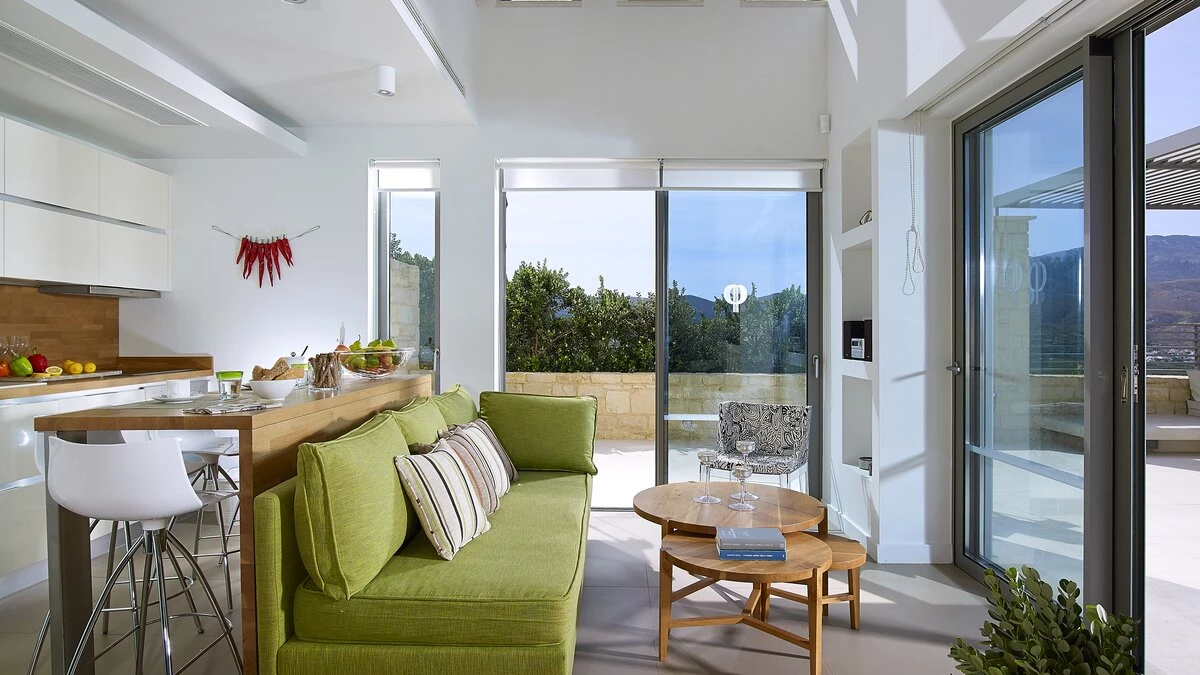 Tucked away above the traditional village of Agios Georgios, Harmonic Bliss combines a wonderful sense of privacy with easy access to Crete’s west coast treasures. Viglia Beach lies just 2km away, Falasarna’s golden sands are 11km to the west, and the historic islet of Gramvousa is only 10km from the villa. For added convenience, a supermarket is a short 550m stroll away, making it easy to enjoy long, leisurely meals at home.