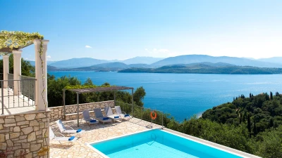 A wonderfully comfortable luxury villa in Lefkada, with magnificent sea views from its secluded seaf... -