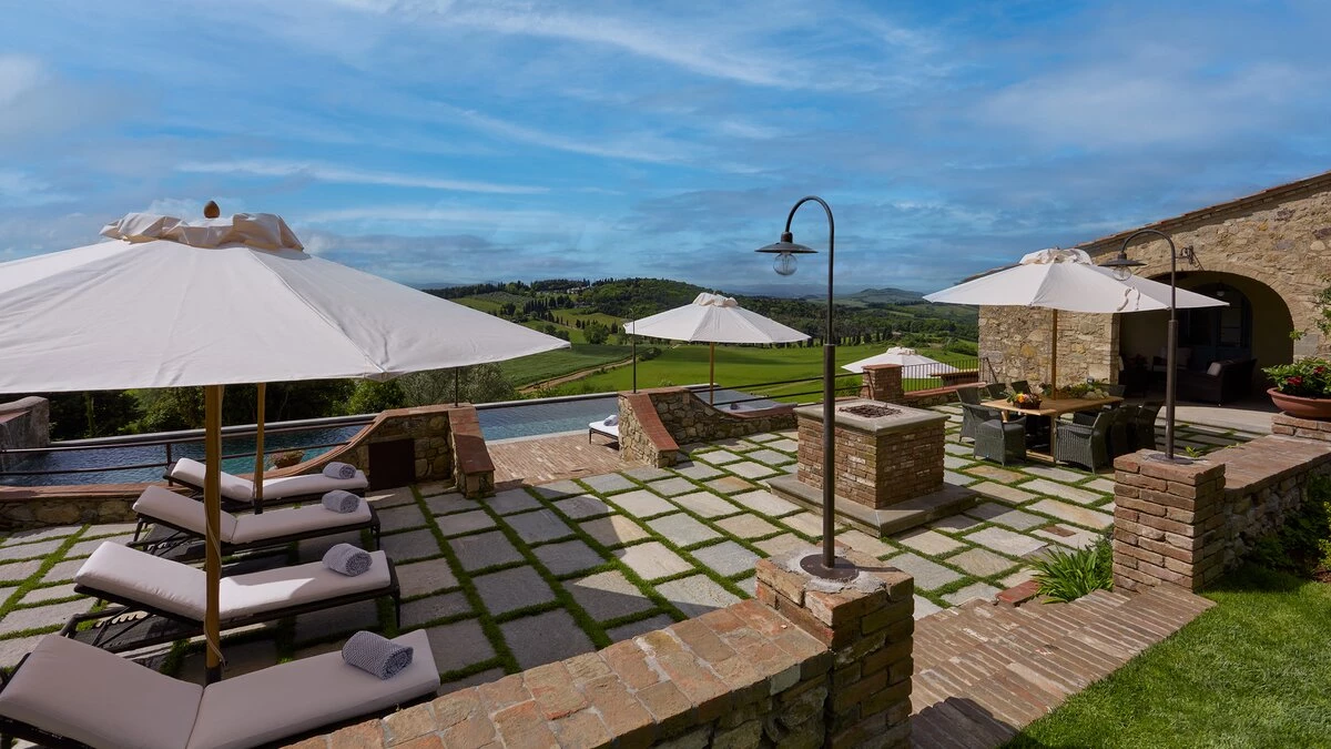 La Fonte is a newly refurbished, stylish five bedroom villa at Borgo Pignano, perched beautifully am... -