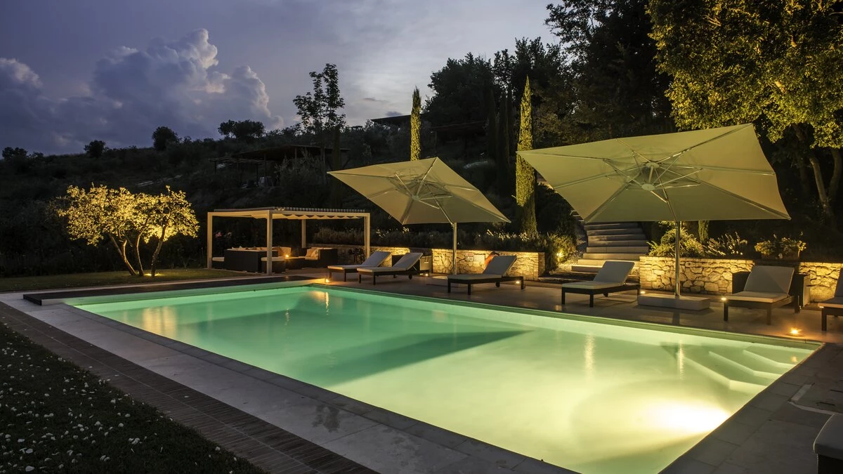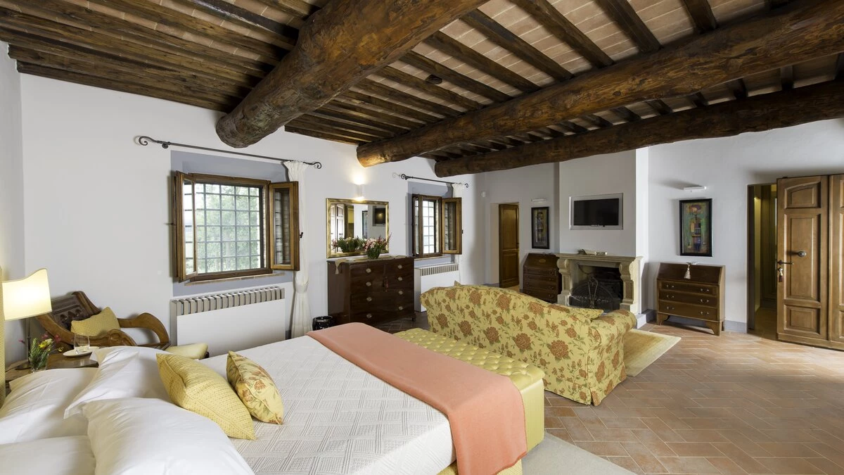 The fabulous Il Pozzo is a flawless restoration of a former farmhouse, dating back to the 18th century but now replete with 21st century facilities. With a dedicated team of staff, five-star service includes luxury toiletries, fresh flowers, concierge and breakfast service, and chef service for lunch or dinner, with sumptuous poolside barbecues an option, and many ingredients fresh from the garden. In its own twelve hectares of Tuscan hillside are orchards, olive groves and vegetable beds, tranquil gardens of lawns and flowers, a play house, a 5-a-side football pitch, and a sizeable swimming pool.