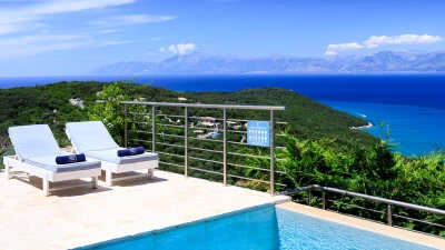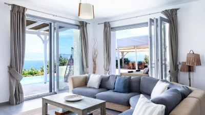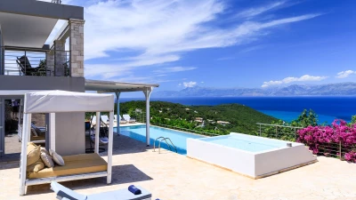 A wonderfully comfortable luxury villa in Lefkada, with magnificent sea views from its secluded seaf... -