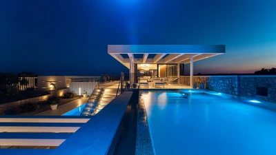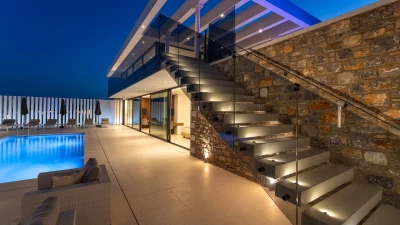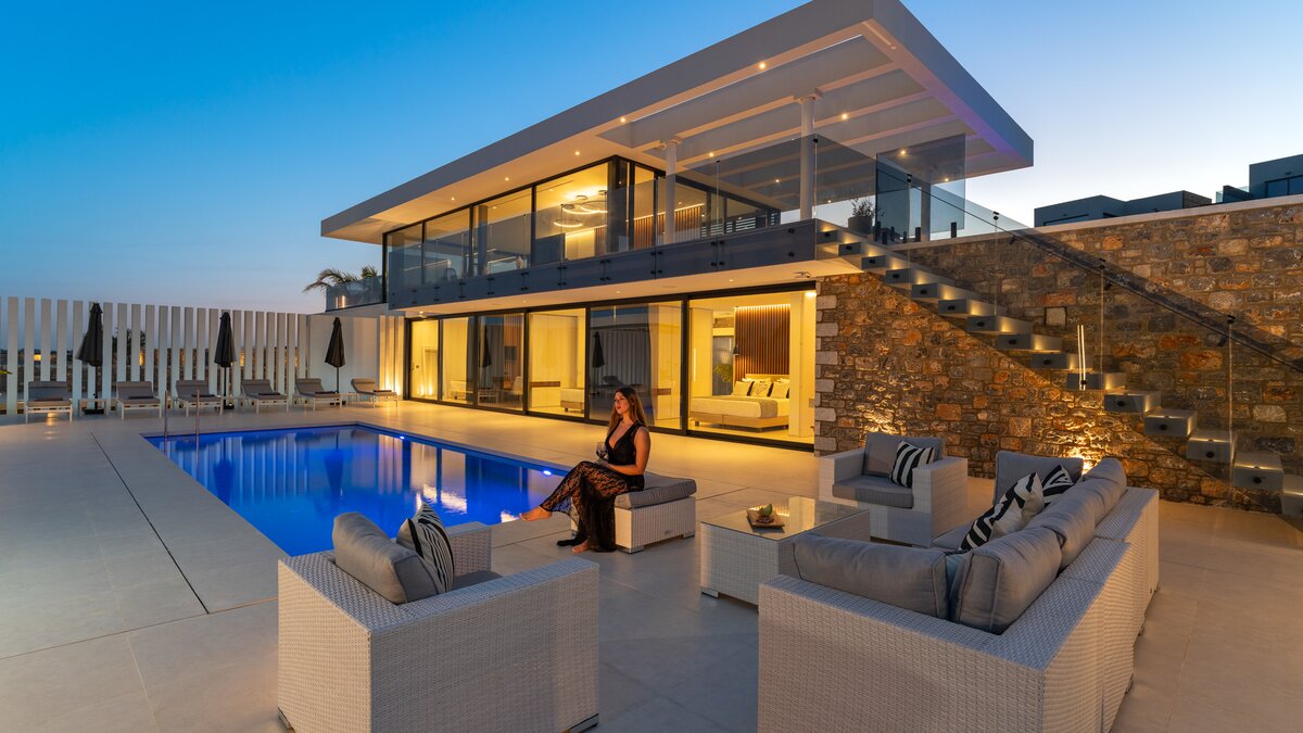 With its own pool, spa and fitness room complementing contemporary comfort, this luxury villa in Cre... -