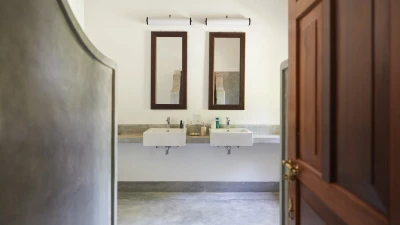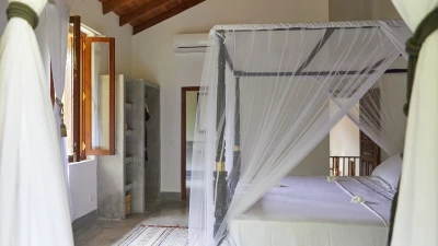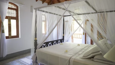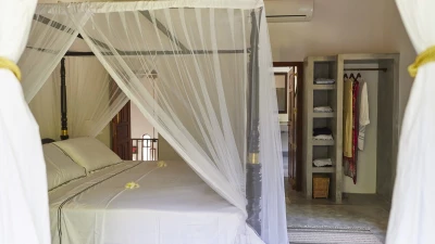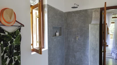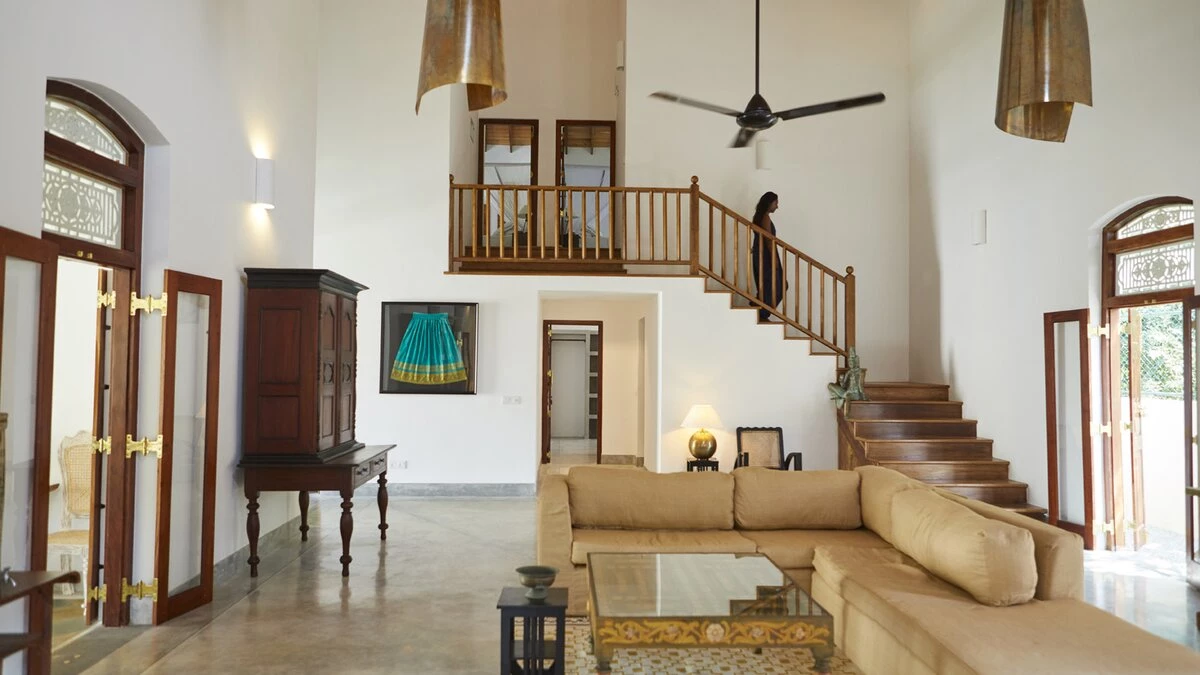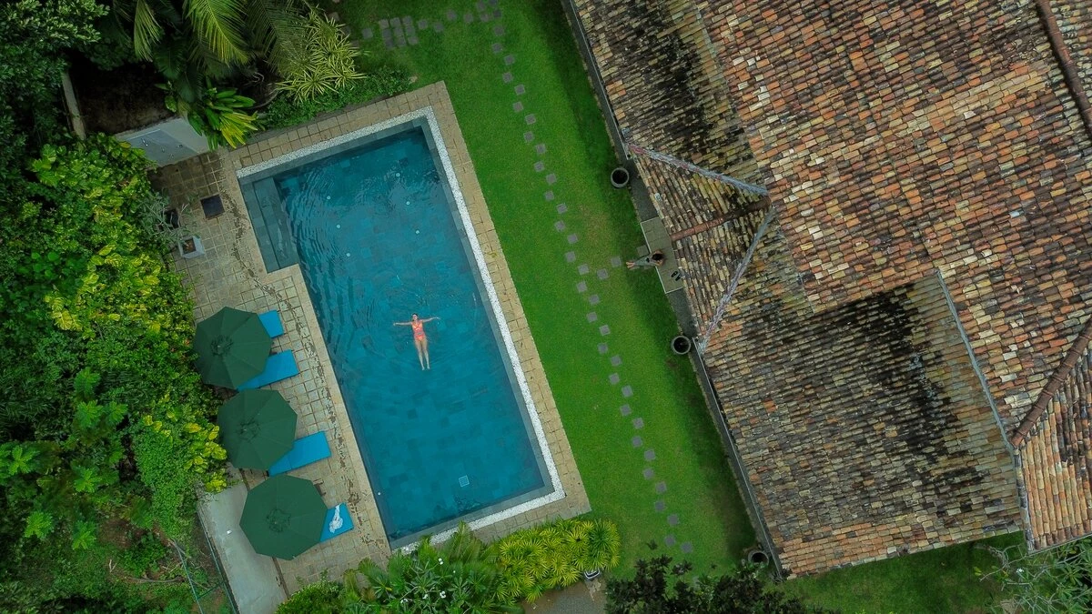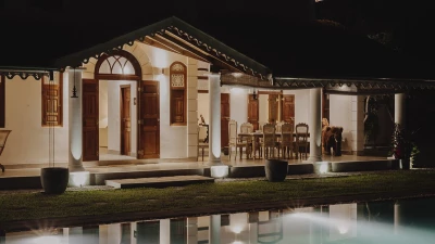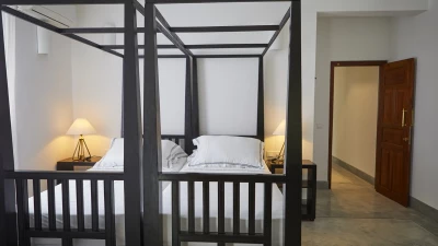 Inside, the villa features double height living spaces, and the interiors exude cool and breezy comfort throughout. The living area presents a wide and open space, and with heritage architecture built brand new in 2017 by a British Sri Lankan interior designer, Kingfisher seamlessly blends modern conveniences with historic charm. Walking through the villa, you'll find four beautiful double bedrooms, designed to best allow guests a truly restful stay, as each features four-poster beds and en suite with well-appointed shower rooms. The villa offers ceiling fans or air conditioning and and impeccable meals prepared by the in-house chef, elevating the dining experience to luxurious heights with a poolside dinner table or cooking class.
