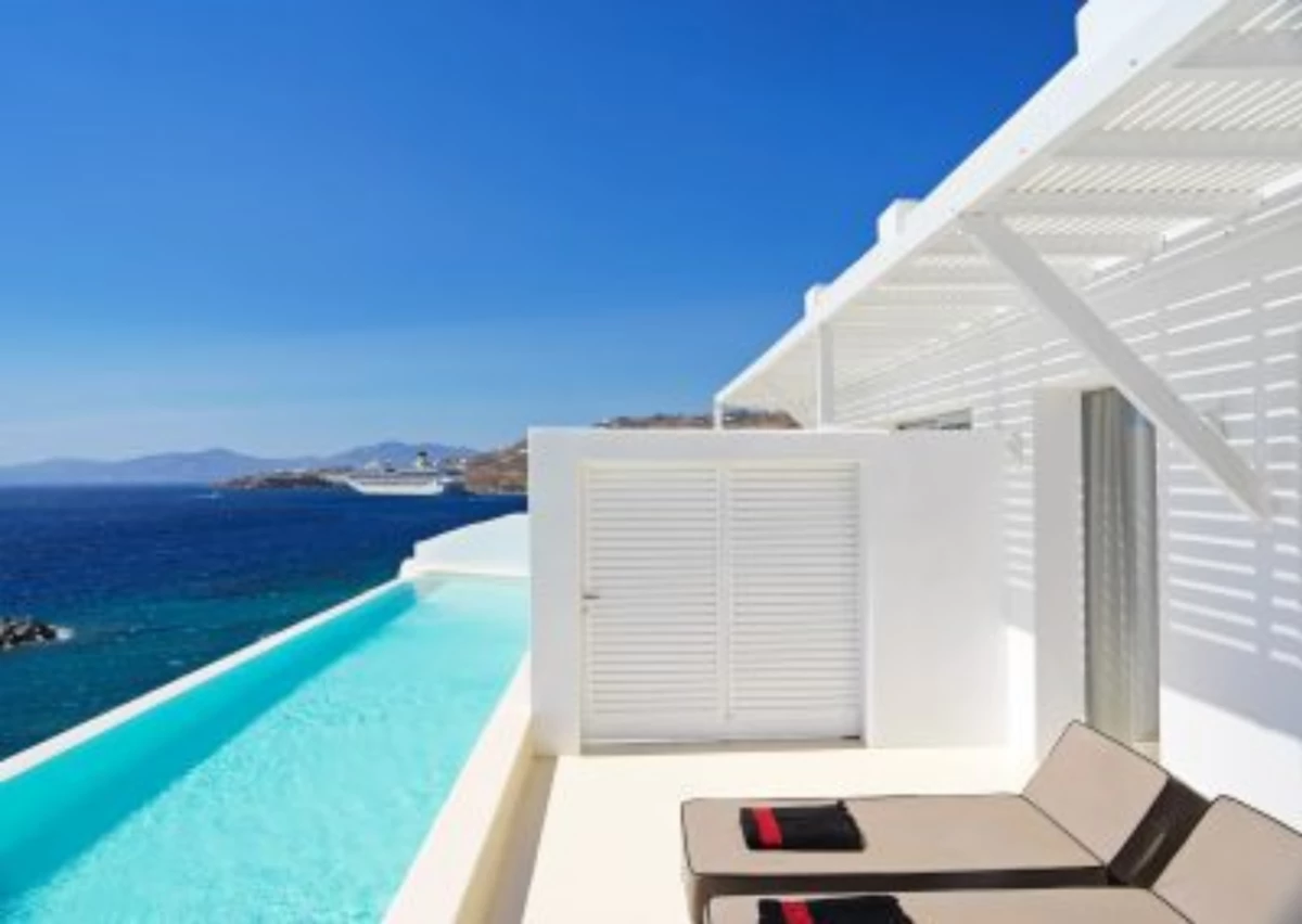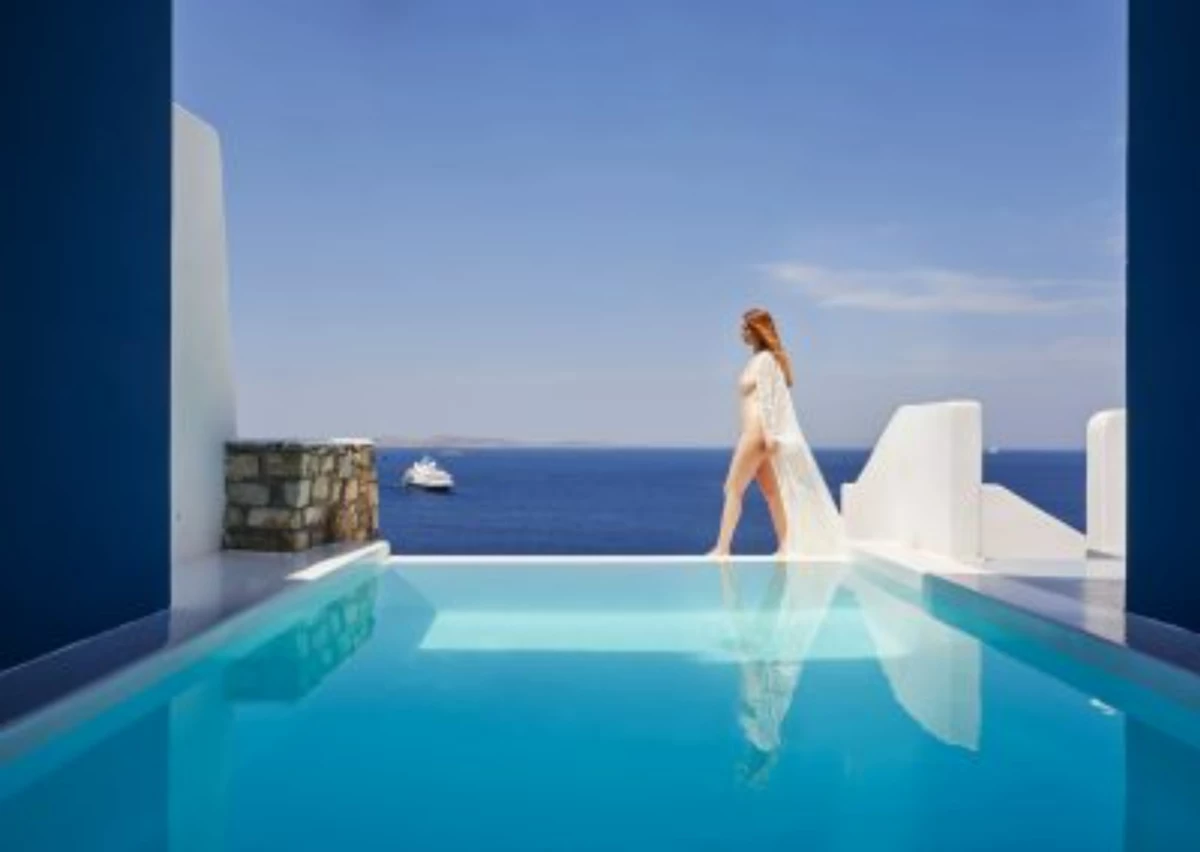 Perched on a serene cliffside just moments from the vibrant heart of Mykonos Town, Kouros Hotel and Suites is a beautifully designed haven where contemporary elegance meets iconic Cycladic charm. This refined five-star retreat promises breathtaking sea views, exceptional service and an atmosphere crafted for pure relaxation. It’s the ideal choice for travellers seeking style, tranquillity and that unmistakable Mykonian magic.