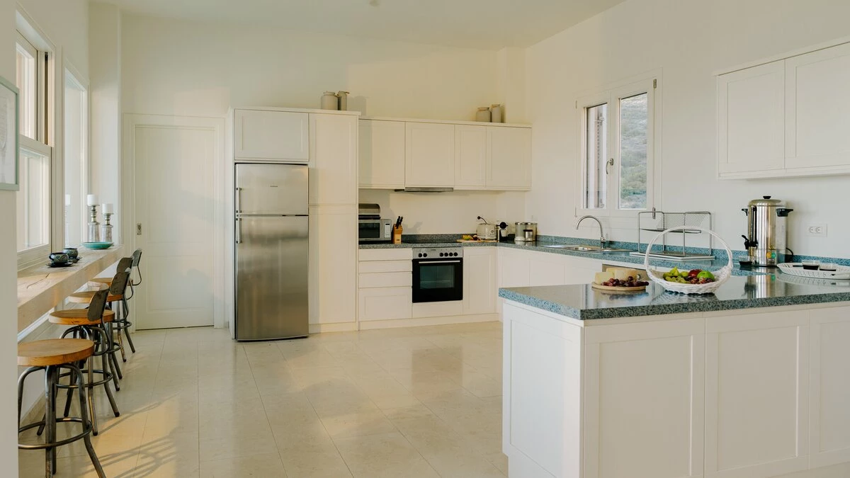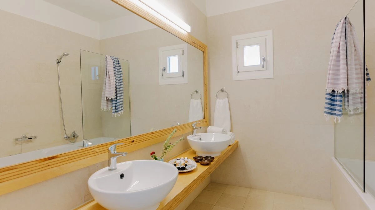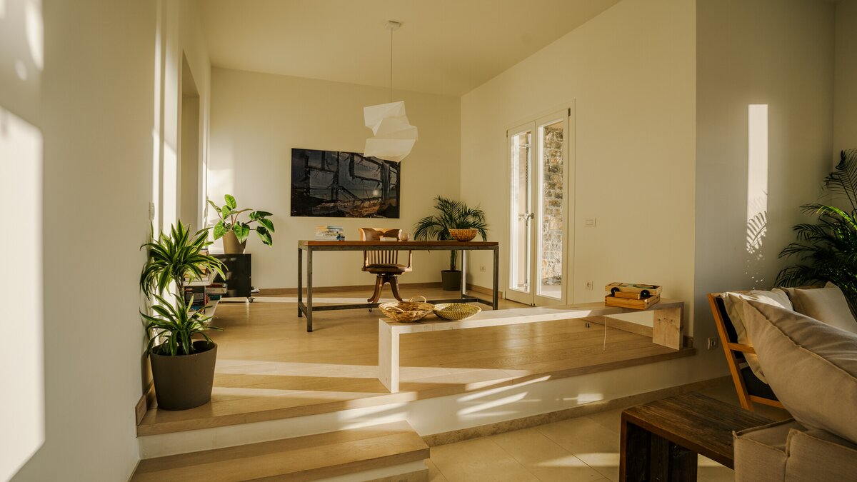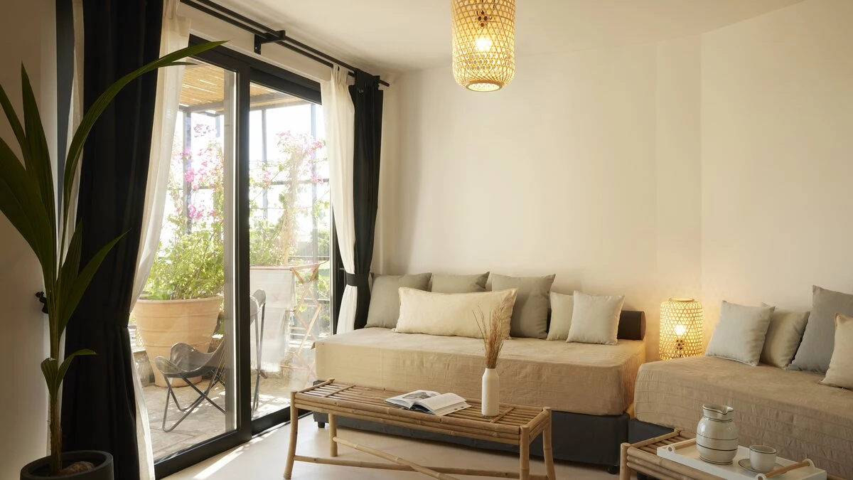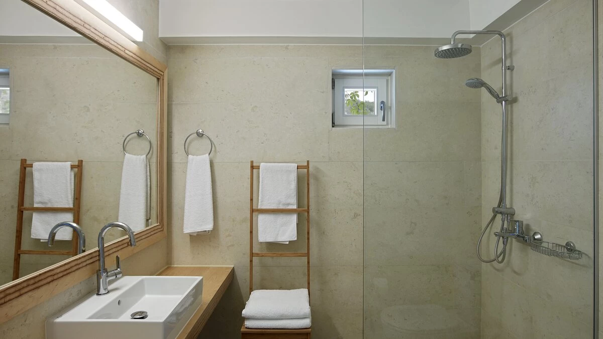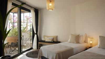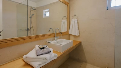 Kyra is a spacious, elegant villa with an excellent choice of outdoor living spaces. Head inside to discover a bright and modern living room complete with a desk and doors leading to the terrace. The white-washed kitchen/dining area is spacious and elegant, offering a lovely space to cook and dine with friends or family. The ground floor also features two double/twin bedrooms, beautifully furnished and including a shower room en suite each. Head to the first floor to discover a lovely master bedroom, designed with a charming four poster bed, bathroom en suite and opening to the terrace. The first floor also includes a double bedroom with a shower en suite. On the lower ground floor, guests will find two double/twin rooms with shower en suites, each featuring a convenient opening to the pool area outside. A laundry room and storage space complete this level.