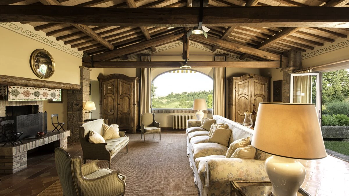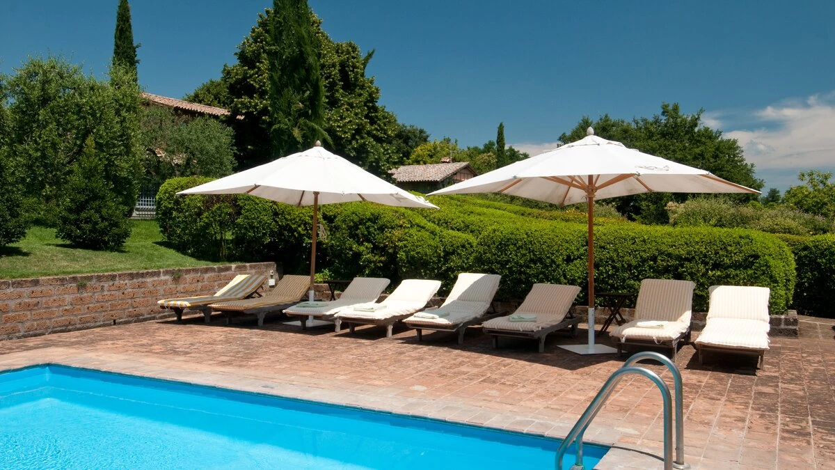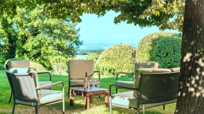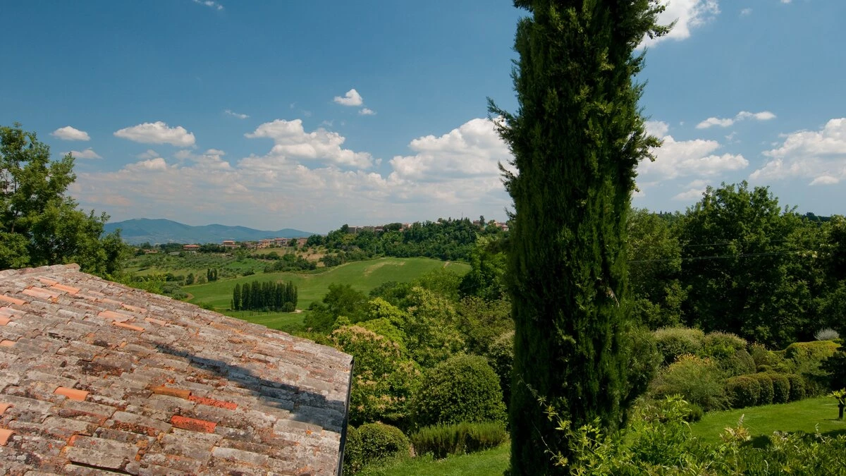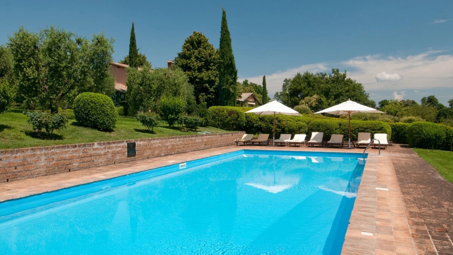 Encircled by manicured gardens of lawns, shrubs and trees, this is a lovely villa in the heart of Umbrian attractions. Fabulous views extend over olive groves and vineyards to distant hills and mountains, emphasising its peaceful rural position. Yet Orvieto’s restaurants, shops and ornate Duomo are just 5km away, and a 45km drive brings medieval Todi into reach. In the immediate area, there are local shops and riding stables at nearby Porano and, a five hundred metre stroll away, a floodlit tennis court is shared with sister-villa La Crete.