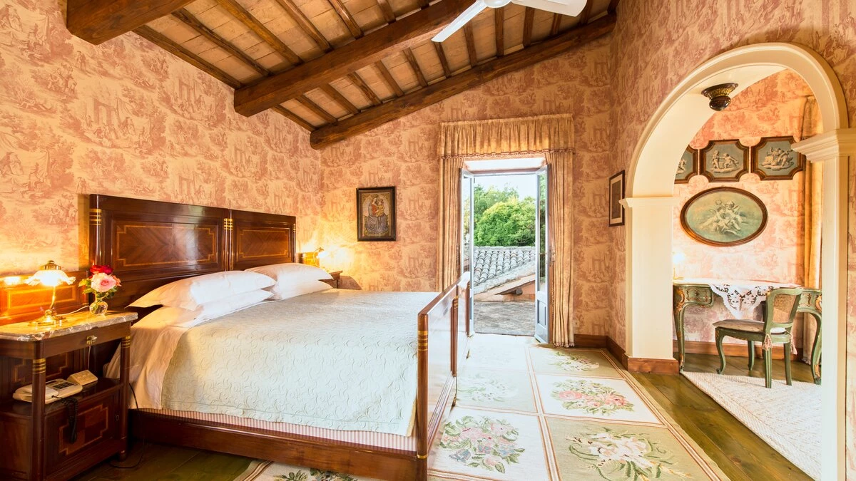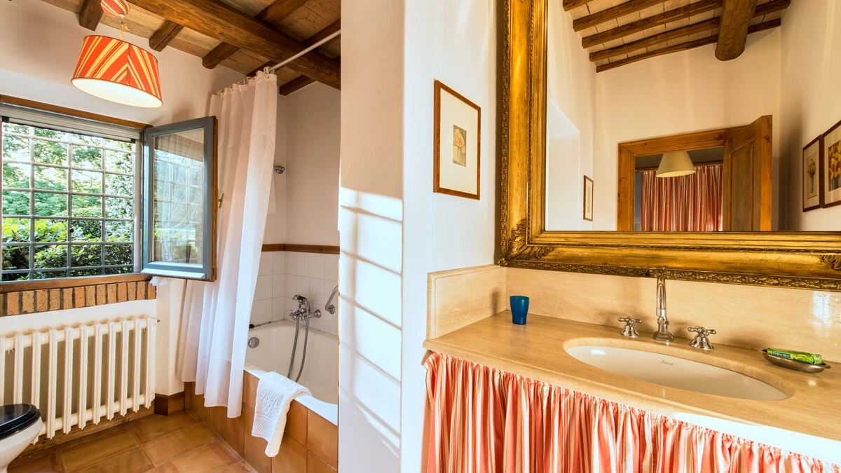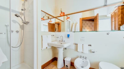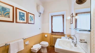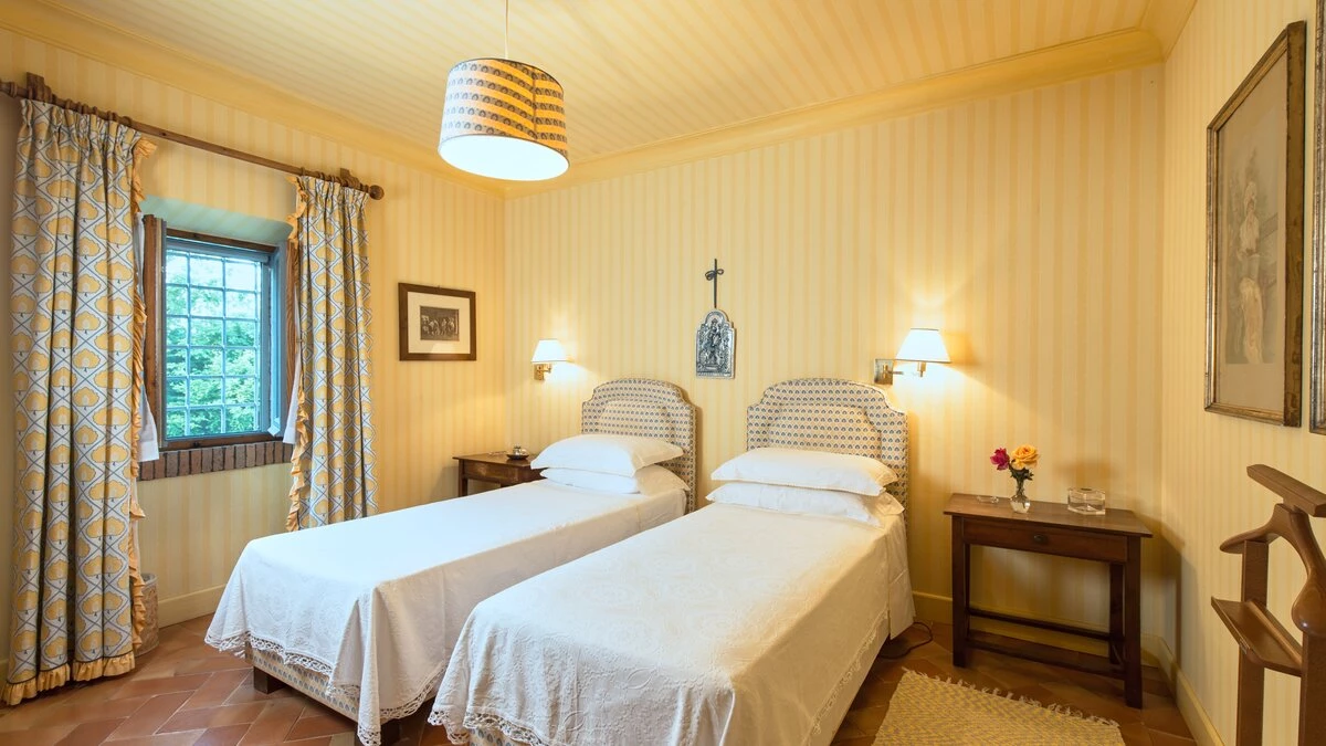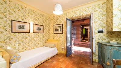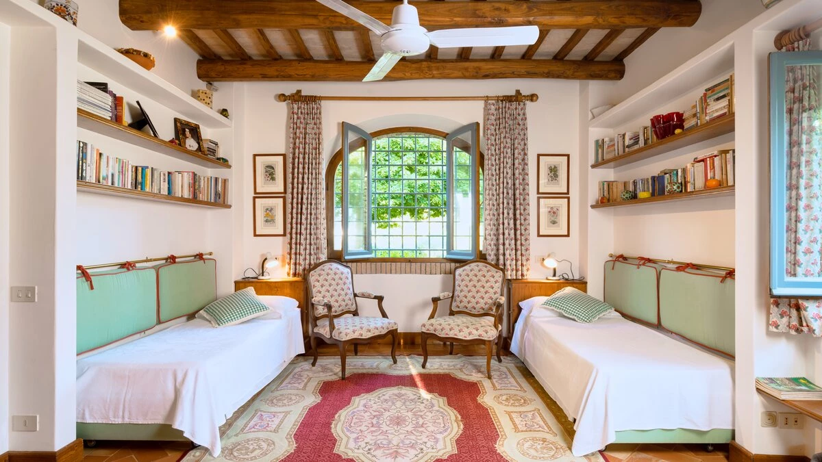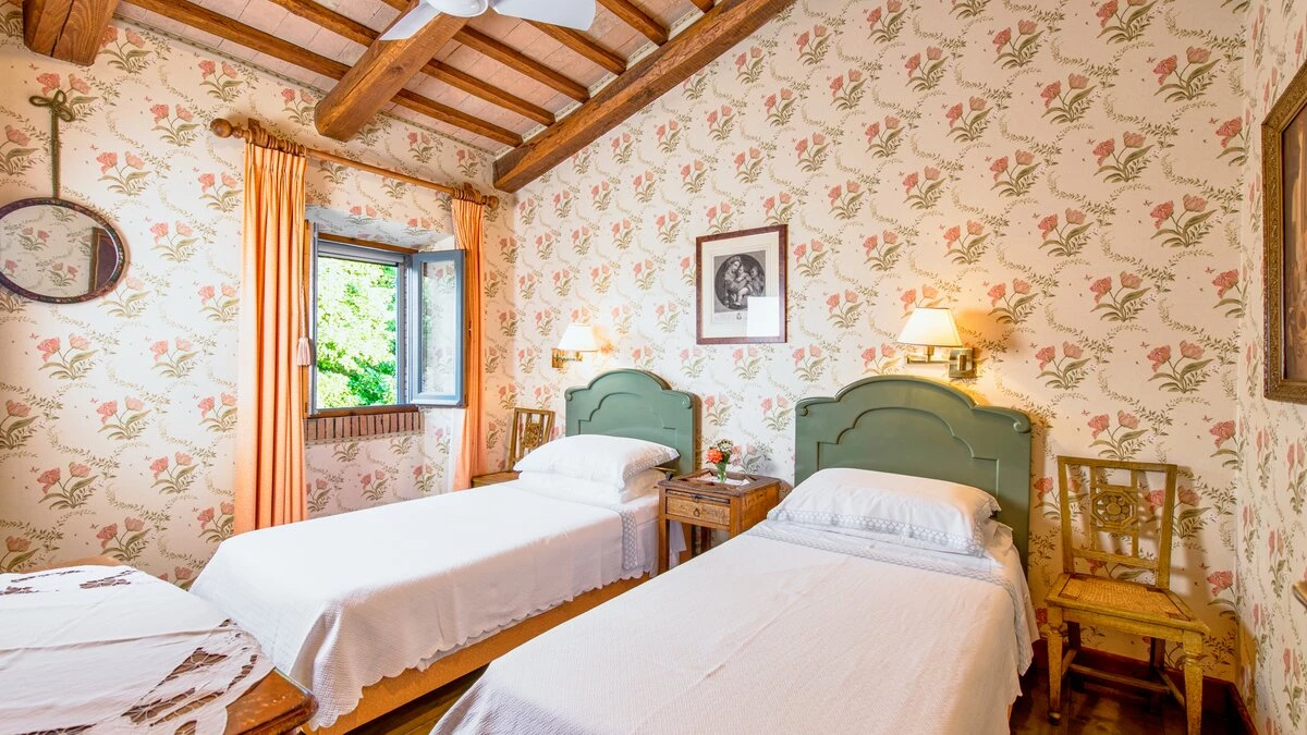 In lawns just below the house, La Casetta has its own large 16 metre pool, overlooked by a poolside pergola, while a wisteria-shaded terrace runs the length of the villa to create al fresco sitting and dining areas. Very welcoming interiors include a breakfast kitchen, a main sitting room with roof rafters, a huge picture window and double doors to the garden. The bedroom layout is ideal for two families or friends travelling together. There are two spacious double/twin bedrooms at either end of the ground floor. At first floor level, there is another very comfortable twin/double bedroom and a luxuriously spacious and panoramic master suite. All are traditionally furnished with fine fabrics and antique pieces, and the innately relaxing atmosphere could be enhanced with cook service.