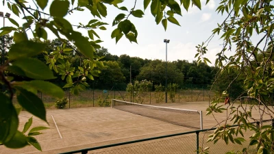 The tennis court is shared with the sister property Le Crete