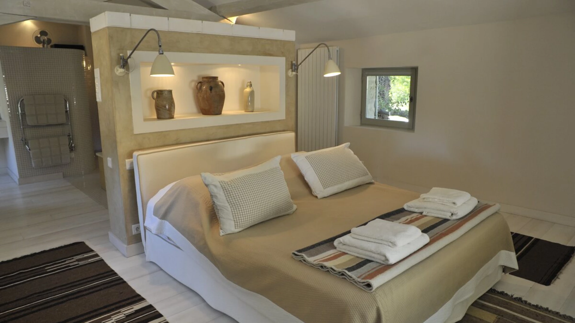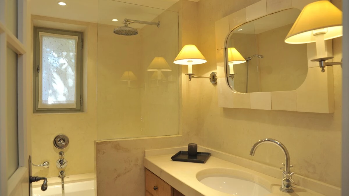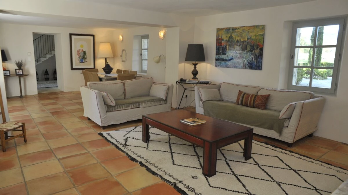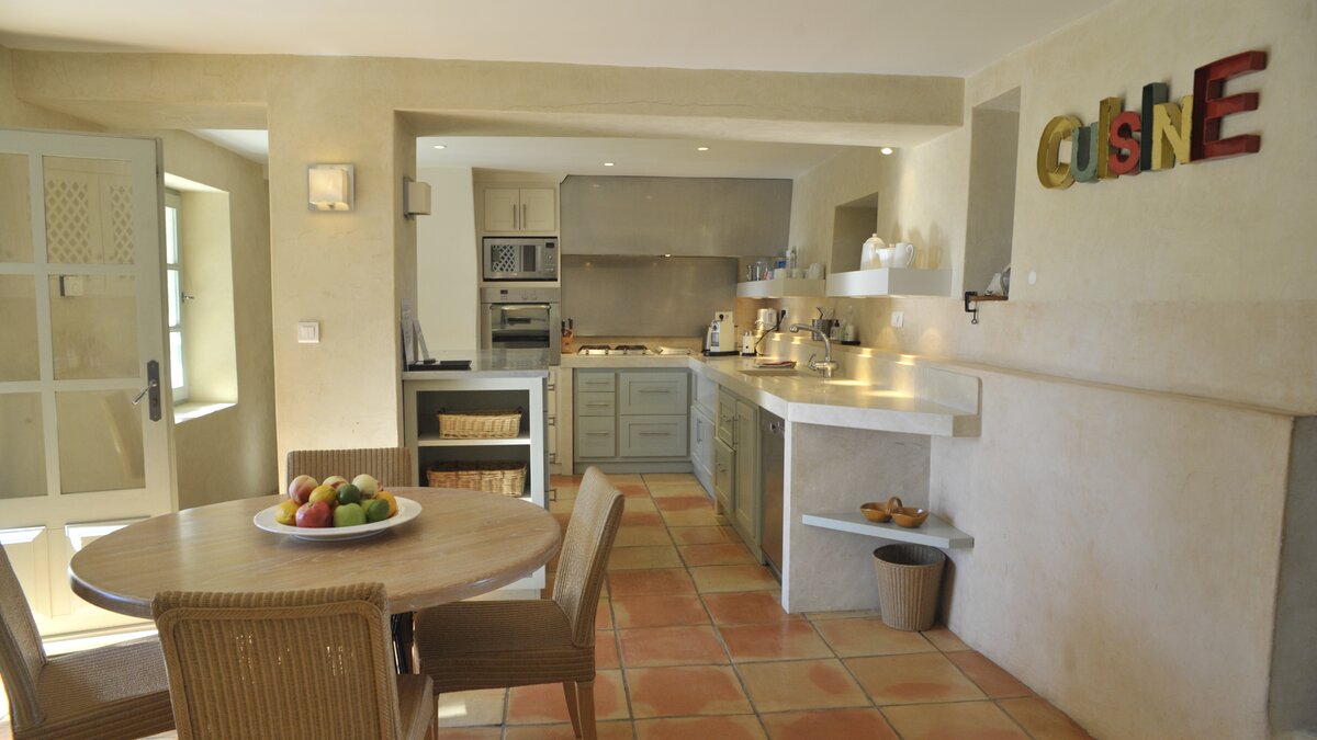 With its mellowed stone walls, pretty green shutters and pale gold pantile roof, this lovingly renovated ‘mas’ seems as timeless as the landscape in which it sits, but early residents of the old farm would barely recognise its cheerfully furnished rooms, and may well covet its contemporary comforts. These days the house basks in broad lawns and well-tended gardens, where mature trees cast cooling shadow, a boules pitch and a barbecue encourage outdoor living, and a large swimming pool is heatable on request, with loungers and a big sail shade on its lawned surround. Beside the house, and overlooking the lavender field, a spacious terrace is furnished for al fresco wining and dining, echoing an indoor sitting/dining room which, with underfloor heating, comes into its own in the cooler months.