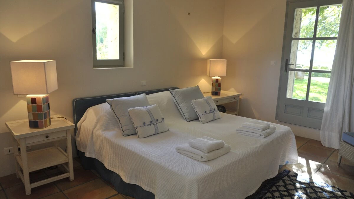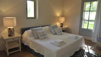 Three of the villa’s five bedrooms are flexibly furnished for twin or king-size use, all are attractively styled in vibrant colours, and each is complete with its own bath or shower room. A five minute drive from local shops and eateries in Joucas, the villa is within twenty minutes of Goult, Gordes and Apt.