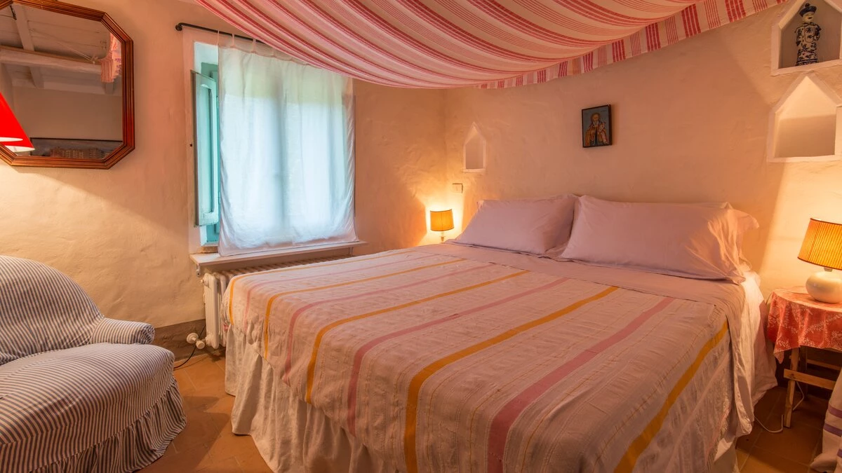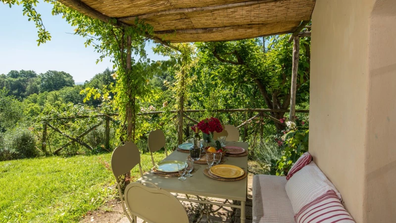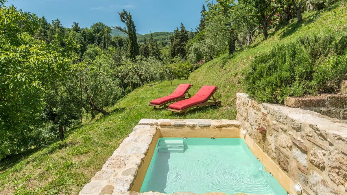 There is satellite tv and WiFi in the house and, in the garden, a power point in the Ottoman style pergola, the ideal spot for lounging and listening to music. Set in a tree-lined terrace, a traditional Tuscan fountain has been transformed into a private plunge pool, perfectly proportioned for two and complete with hydro-massage. La Torretta is adjacent to sister-villa La Torre, and the two could be booked together for groups of family or friends.