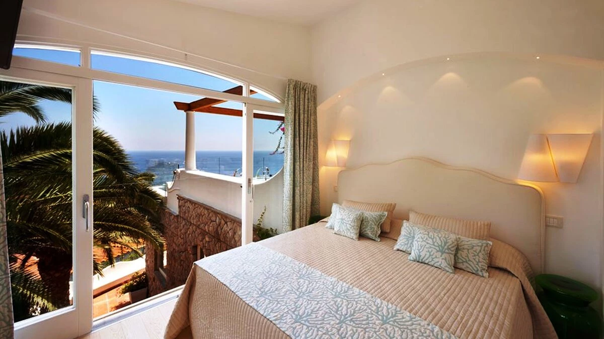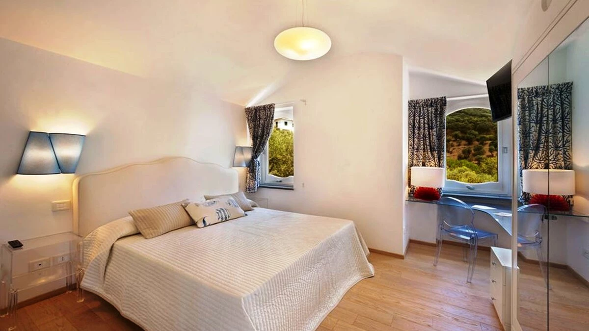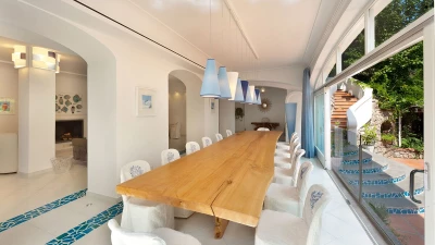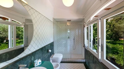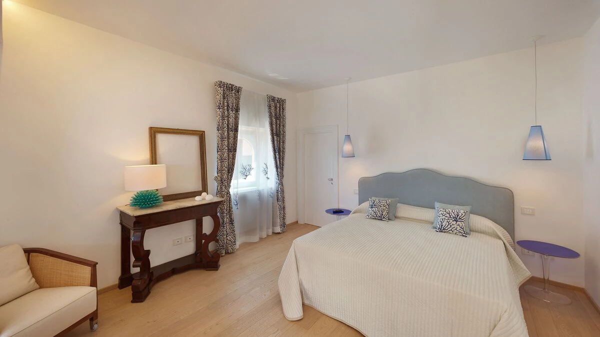 L’Ancora’s stylish, contemporary interiors beautifully complement the villa’s layout. The open-plan living and dining areas are adorned with marvellous details and furnishings, creating the perfect space for socialising at home. The kitchen is fully equipped for any culinary needs, sporting a four-burner gas stove, a coffee machine, a toaster, a microwave, a dishwasher, a fridge-freezer and a juicer. Guests can also enjoy a continental breakfast buffet served daily when staying at L'Ancora. Each of the villa’s five bedrooms hosts a private en suite, with multiple rooms overlooking the garden or the sea, and one with its own hydromassage bath. Up on the second floor, a bedroom opens onto a private terrace, for incredible views over both the land and the sea.