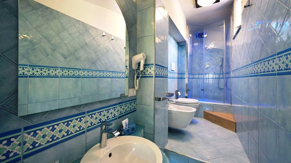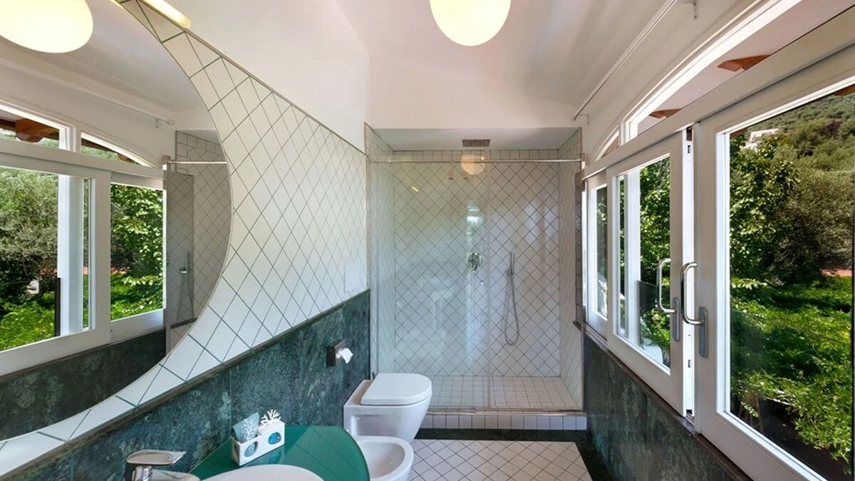 Outside, the Jacuzzi hosts dazzling panoramic views across the Tyrrhenian Sea, whilst the pool area presents a more quiet and secluded spot for families or groups of friends to relax, unwind, and bask in the sun. One of the villa’s sea view terraces is home to a barbecue area and a wood-fired pizza oven, perfect for those looking to make home-cooked meals in the open air. For additional dining options, there are several Michelin-starred restaurants to choose between in Nerano, an old seafaring village, just 900 metres from the villa, also home to the wonderful sandy Cantone beach. Slightly closer, just 300 metres from the villa, is a beach where boat hire is available. There are several local shops and supermarkets near to the villa too. The historic town of Sorrento is only 15 kilometres from the villa, whilst Positano and Amalfi town sit at the 25 and 39 kilometre marks respectively. In the other direction, Pompeii can be found just 40 kilometres away, and for those travelling without use of a car, the SITA SUD bus station is a mere 900 metres from L’Ancora, granting easy access to nearby towns.
