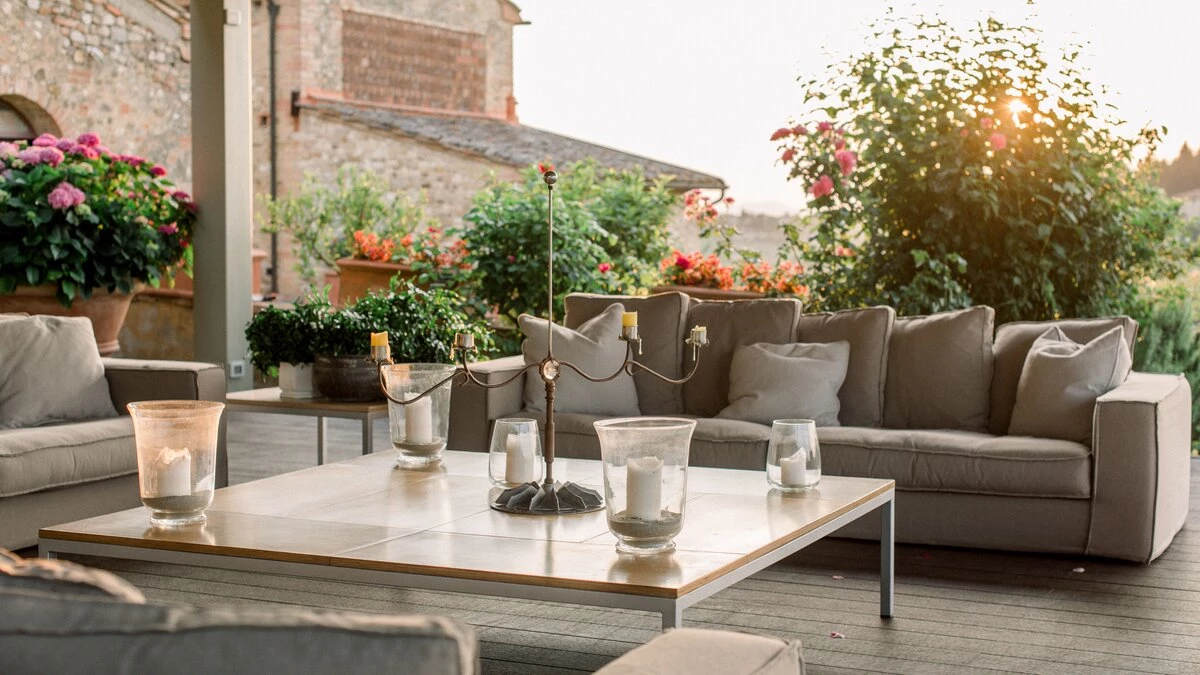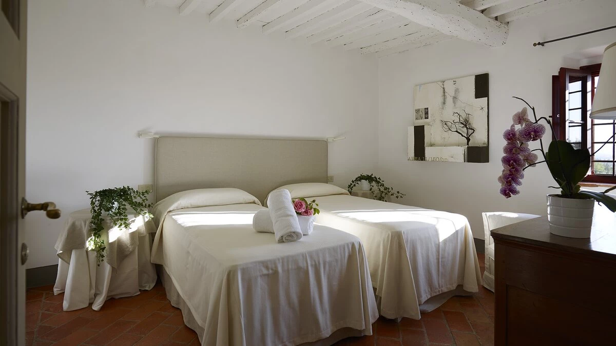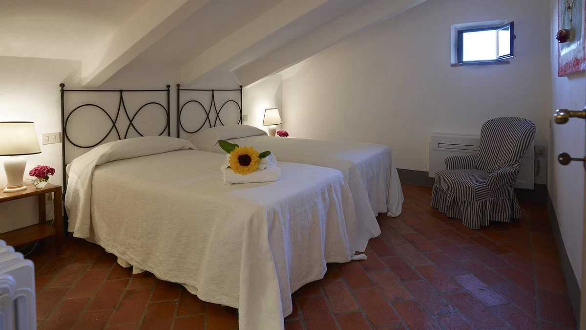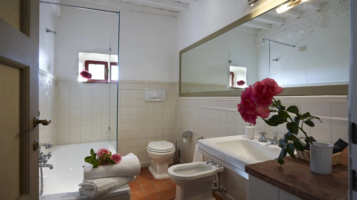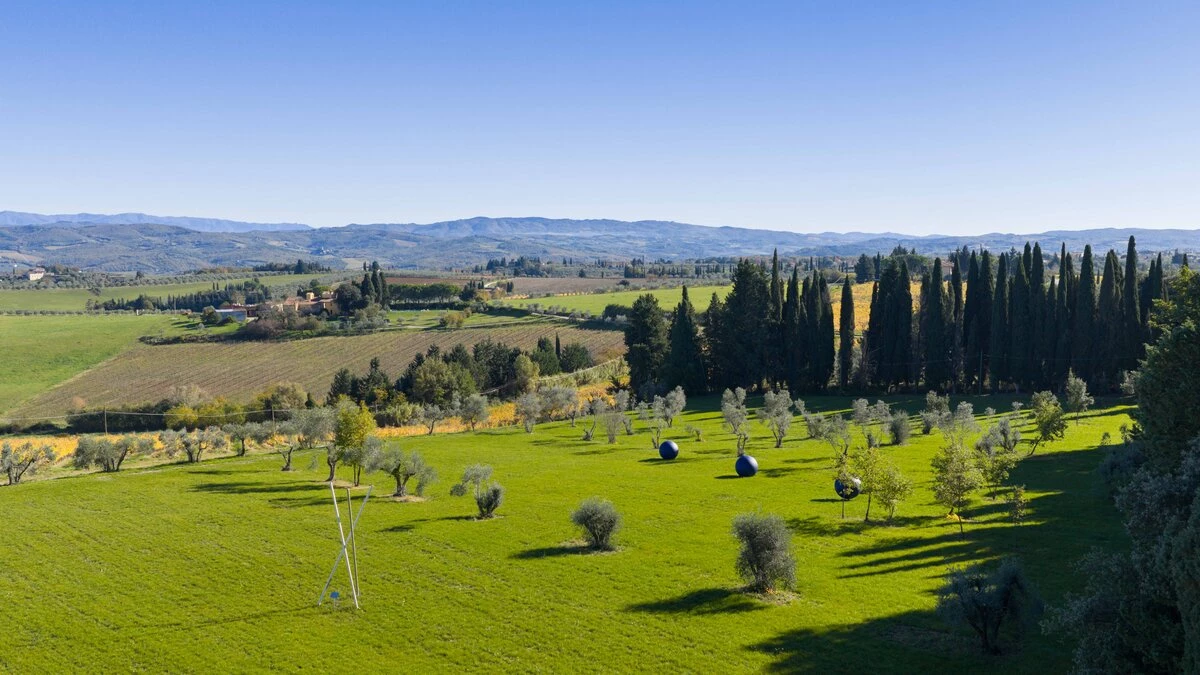 The villa is surrounded by large gardens, ideal for garden parties and special celebrations. The large, private pool is perfectly positioned among wide lawns, vineyards and olive groves. This property, set in the heart of Tuscany, is about 1.5km away from the quaint town of Tavarnelle Val di Pesa. It is the perfect base for sightseeing, and within driving distance of Florence, vineyards in Chianti and the towns of  Volterra, San Gimignano and Siena. The closest airport can be found in Florence, just 39km from the villa.