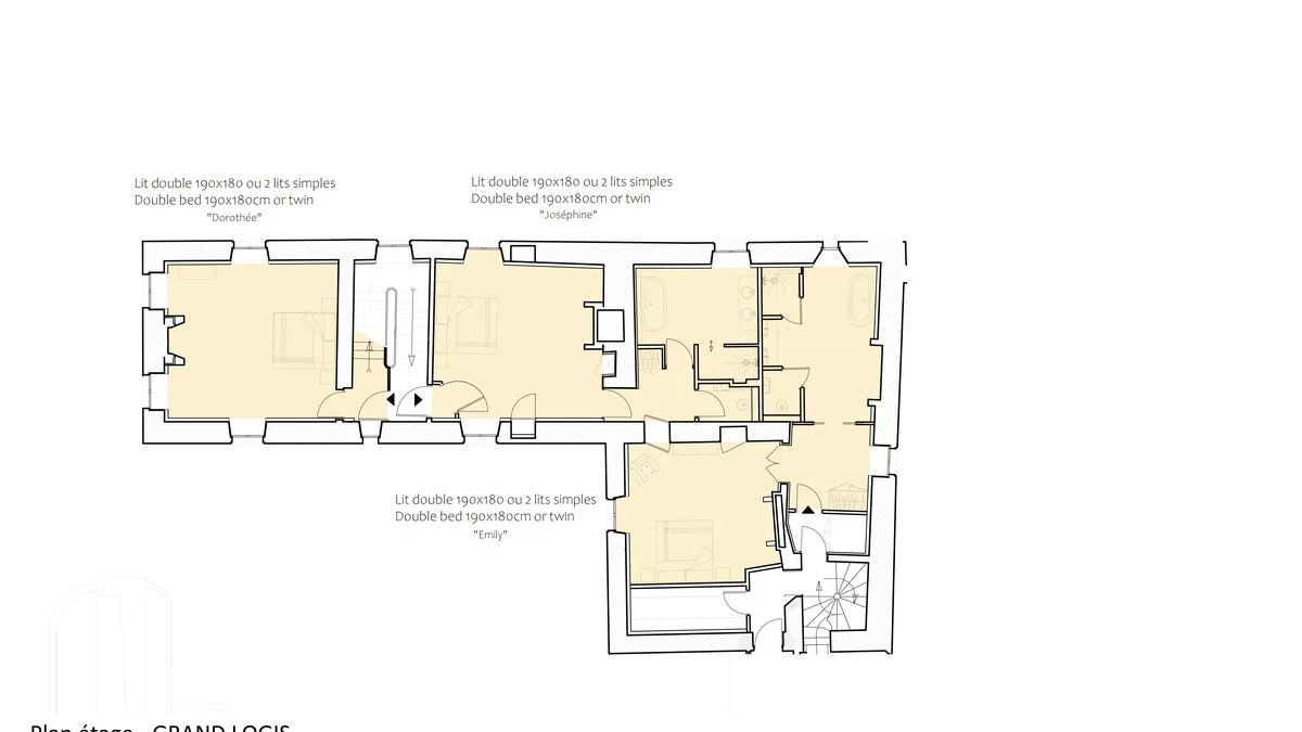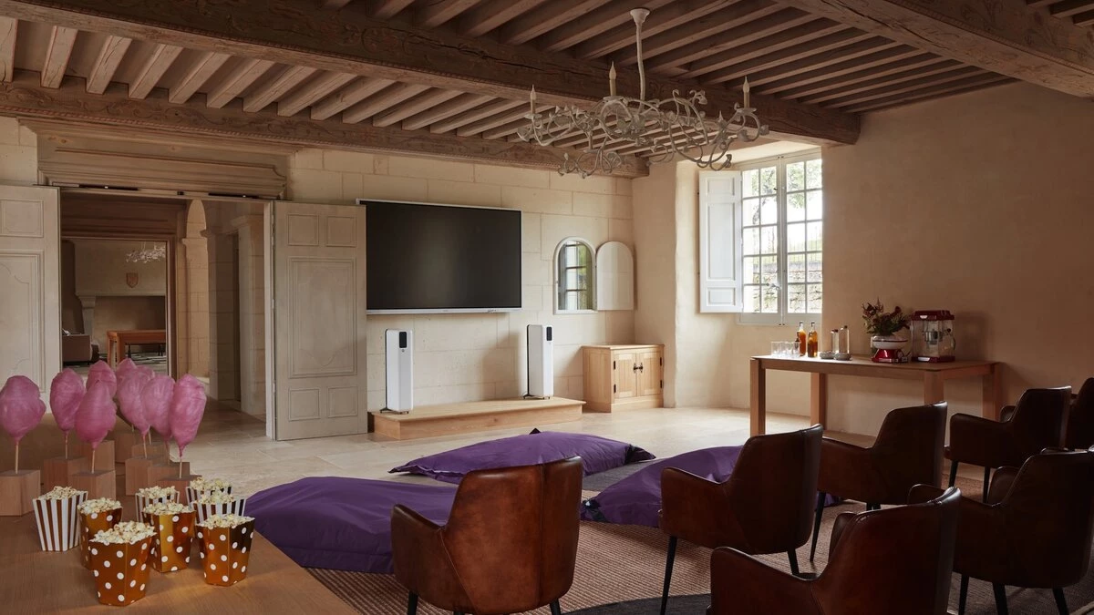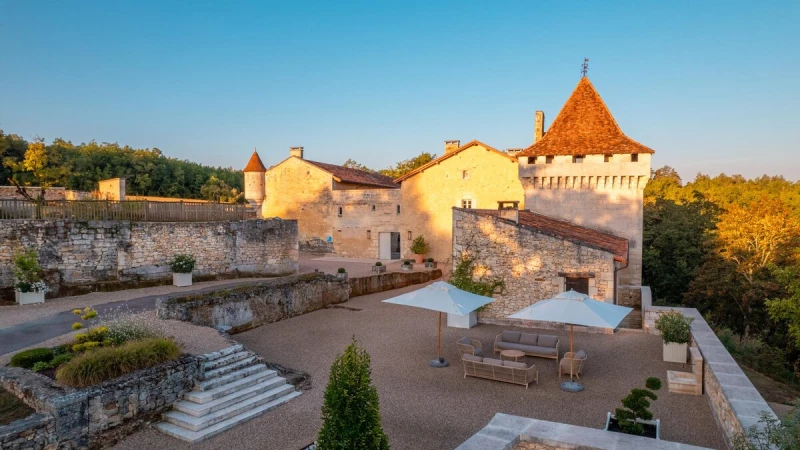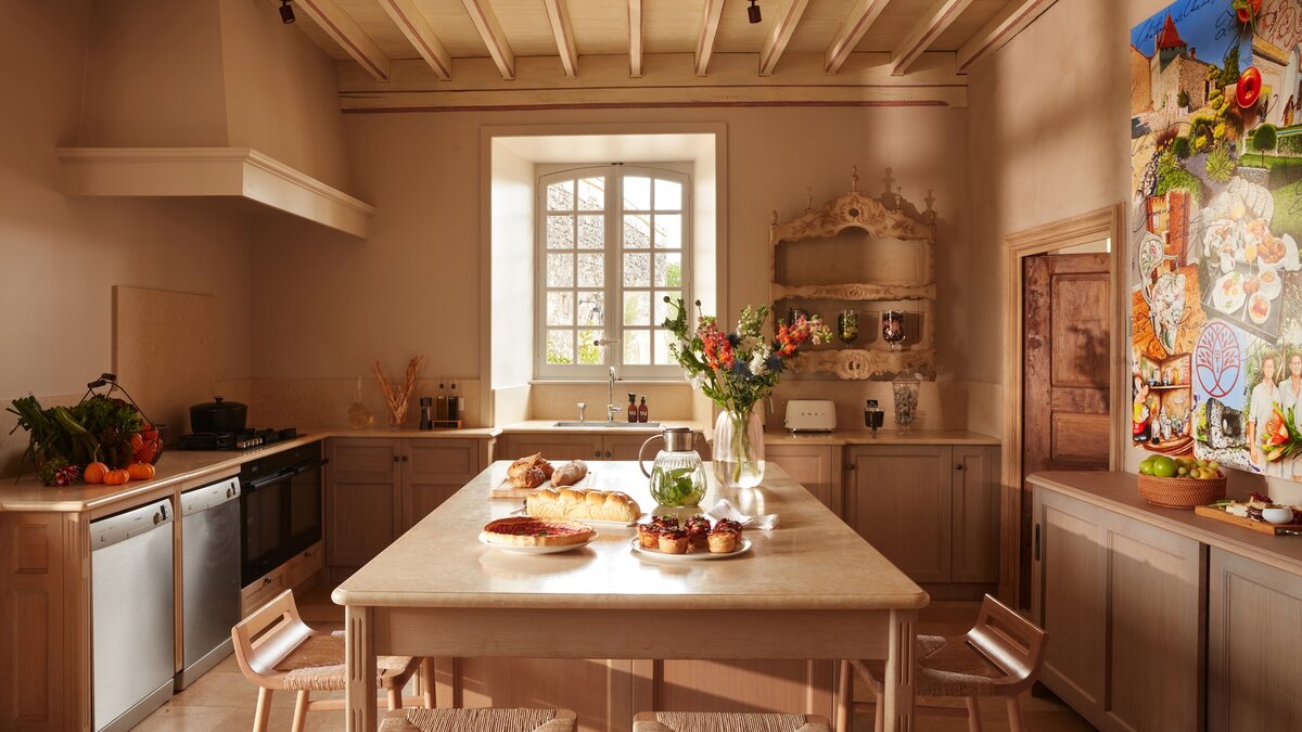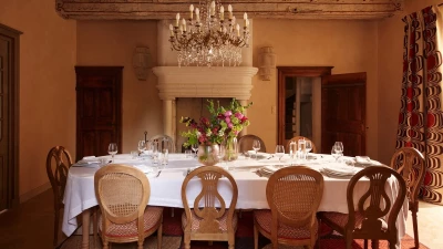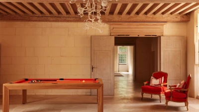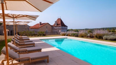 Le Chateau du Roi dates all the way back to the mediaeval era, rebuilt in the 18th century. The estate is large, elegant and authentically French, absolutely perfect for family reunions and weddings. The property is split into three separate houses: the main guest house, small guest house and La Tour. The main house (Grand Logis) can accommodate ten guests, designed with a timeless interior and warm atmosphere. The house has two charming entrance halls, a fully equipped kitchen opening onto an elegant dining room, and two living rooms which offer a stunning view of the courtyard and valley. Each room is spacious and inviting, furnished in authentic French chateau style with a contemporary flair. This house also includes five large bedrooms with en suite bathrooms. The Petit Logis is equally as charming, making for a fantastic wedding reception area. It has two airy pass-through living rooms accessible via a monumental staircase, and four bedrooms to accommodate eight further guests. La Tour is a quaint little building with a living room and two magnificent bedrooms, each complete with a private bathroom.