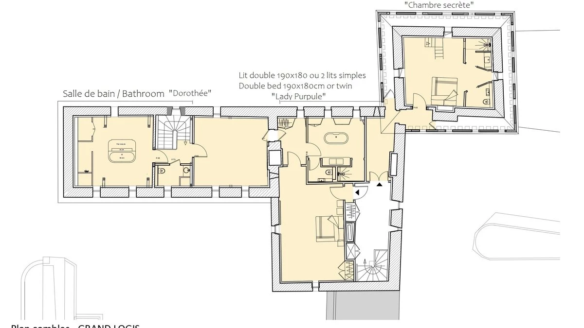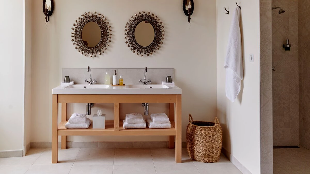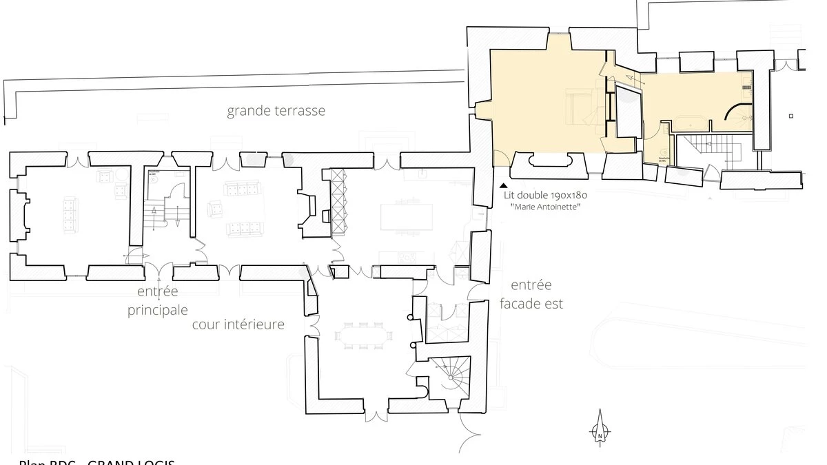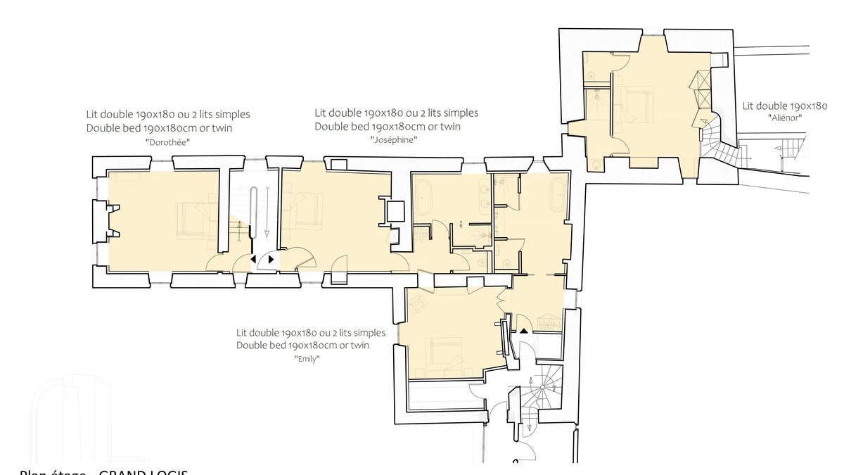 Le Chateau du Roi dates all the way back to the mediaeval era, rebuilt in the 18th century. The estate is large, elegant and authentically French, absolutely perfect for family reunions and weddings. The property is split into three separate houses: the main guest house, small guest house and La Tour. The main house (Grand Logis) can accommodate ten guests, designed with a timeless interior and warm atmosphere. The house has two charming entrance halls, a fully equipped kitchen opening onto an elegant dining room, and two living rooms which offer a stunning view of the courtyard and valley. Each room is spacious and inviting, furnished in authentic French chateau style with a contemporary flair. This house also includes five large bedrooms with en suite bathrooms. The Petit Logis is equally as charming, making for a fantastic wedding reception area. It has two airy pass-through living rooms accessible via a monumental staircase, and four bedrooms to accommodate eight further guests. La Tour is a quaint little building with a living room and two magnificent bedrooms, each complete with a private bathroom.