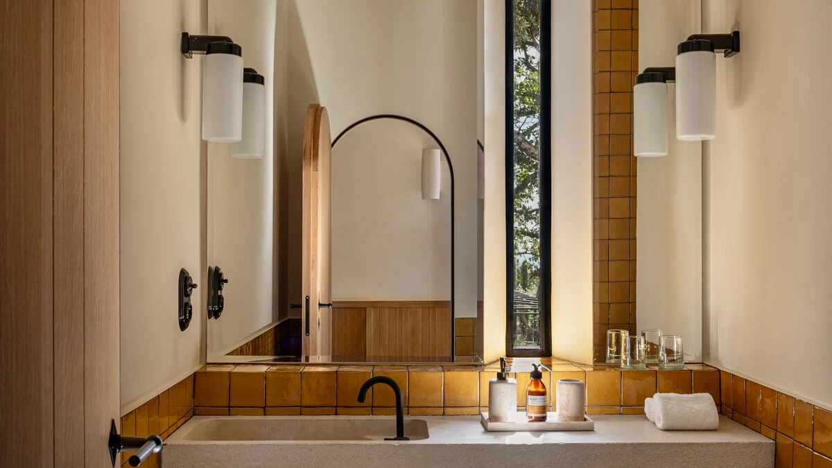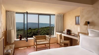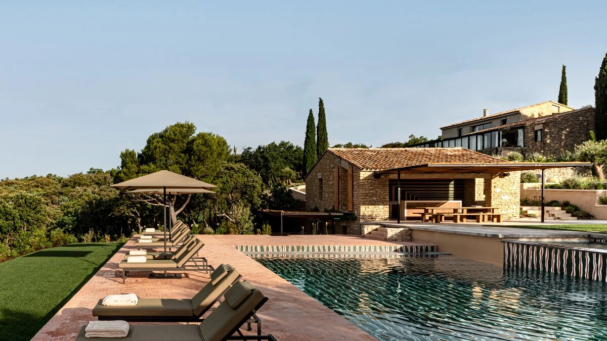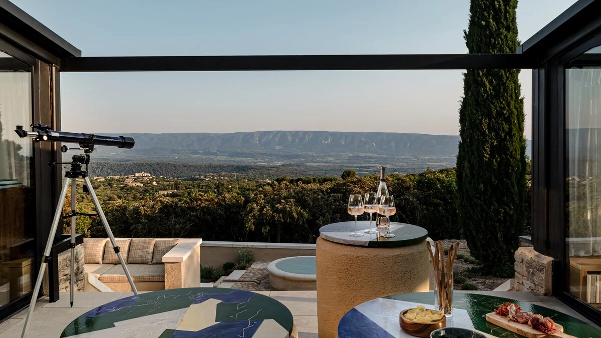 Outside, guests will adore the unique pool, an outdoor cinema, panoramic amphitheatre, stargazing terrace, boules court and much more. There is also a children's playground for the little ones. This Provençal paradise is located in Gordes, a must-see spot perched high on a cliff above the valley. Here, visitors can explore cobbled lanes, churches, and a monastery punctuated by sweet-smelling lavender fields.