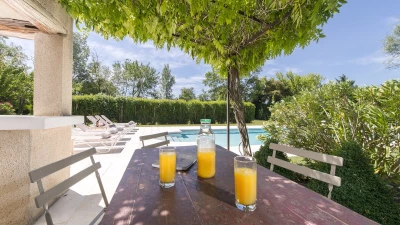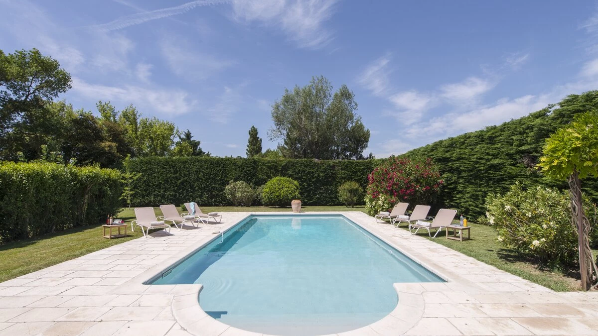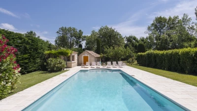 A swimming pool, twelve metres long, takes pride of place in the garden, privately screened with hedges and served by a pool house with shower and fridge. A walkable 1km away from the villa’s semi-rural setting, the pretty village of Mollégès has local shops and a couple of good restaurants and there are other typical local restaurants nearby in Plan-d'Orgon. Further good restaurants are in other nearby villages such as Eygalières.There are bikes for hire, boutiques and pavement cafés for people-watching in historic and lively Saint-Rémy-de-Provence. And Les Baux, Avignon and L’Isle sur la Sorgue are all within 30km for easy discovery.