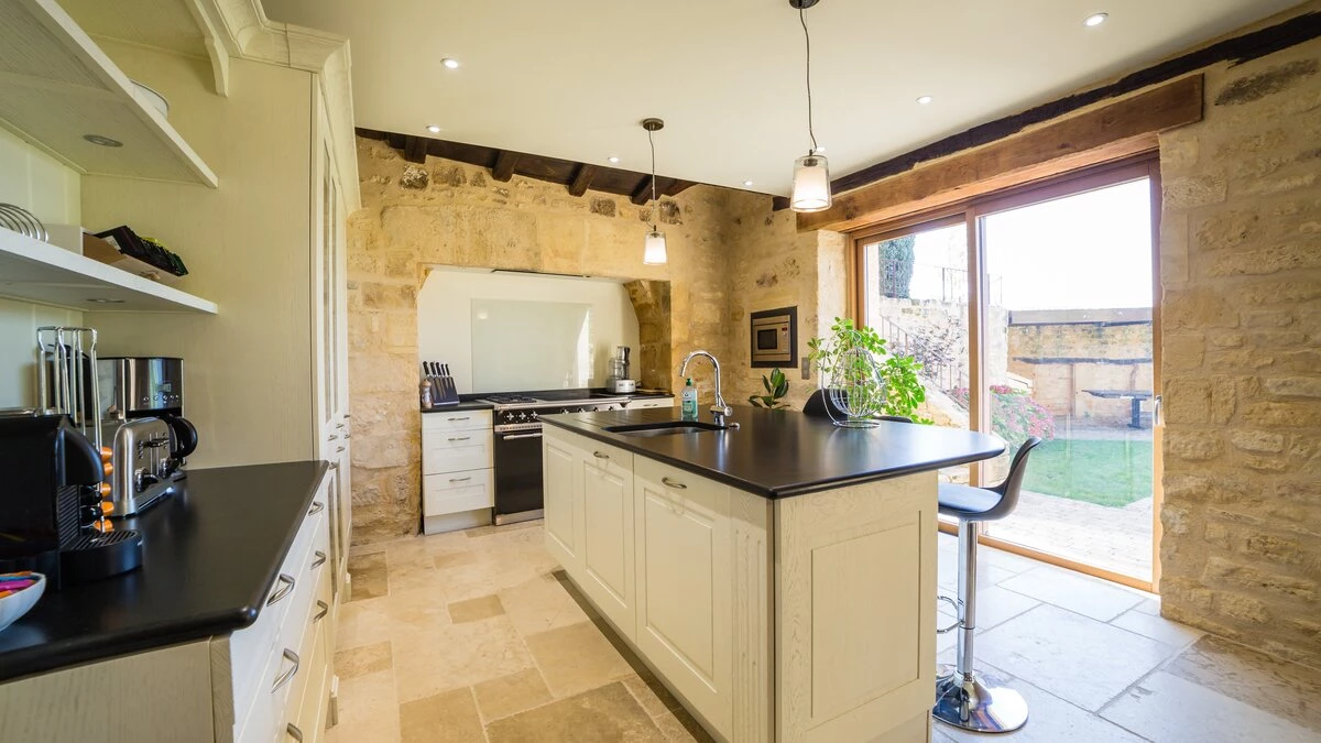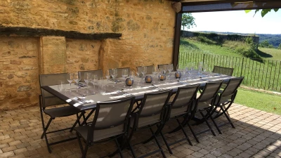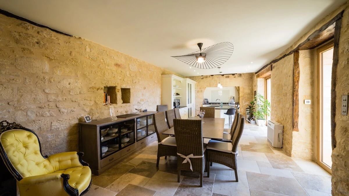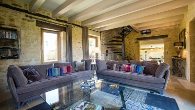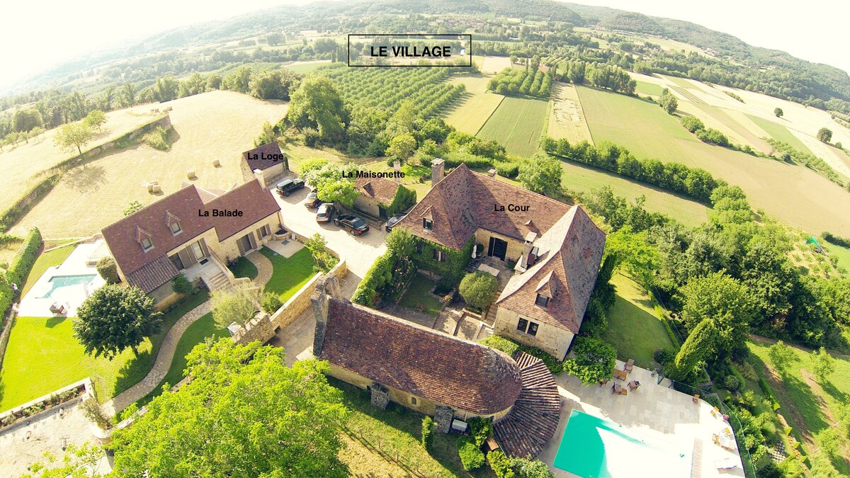 Le Village is a collection of four pretty stone buildings, La Balade, a five bedroom stone house with swimming pool; La Cour , a beautiful stone four bedroom property said to date from the 17th century, with a 10m swimming pool and a chapel suitable for big dinners or parties; and La Loge and La Maisonette, two one bedroom cottages. Varied accommodation provides flexibility for large groups, while the chapel, with large dining table and music system, is a beautiful space for a celebration, making Le Village ideal for a special occasion.Set in pretty gardens and surrounded by green fields, Le Village is a serene and secluded retreat with all modern comforts on hand. Interiors are a charming mix of original features, with wooden ceiling beams and exposed stone walls, and comfortable and stylish furnishings, while outside spaces boast private terraces and pool patios with countryside views. La Cour and La Balade can also be rented separately for smaller groups, please see individual property pages for further details.