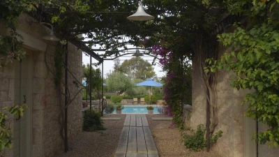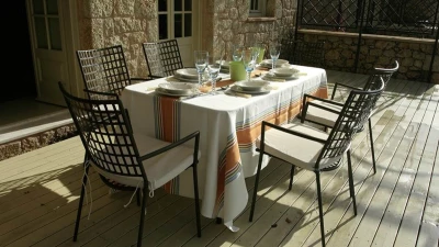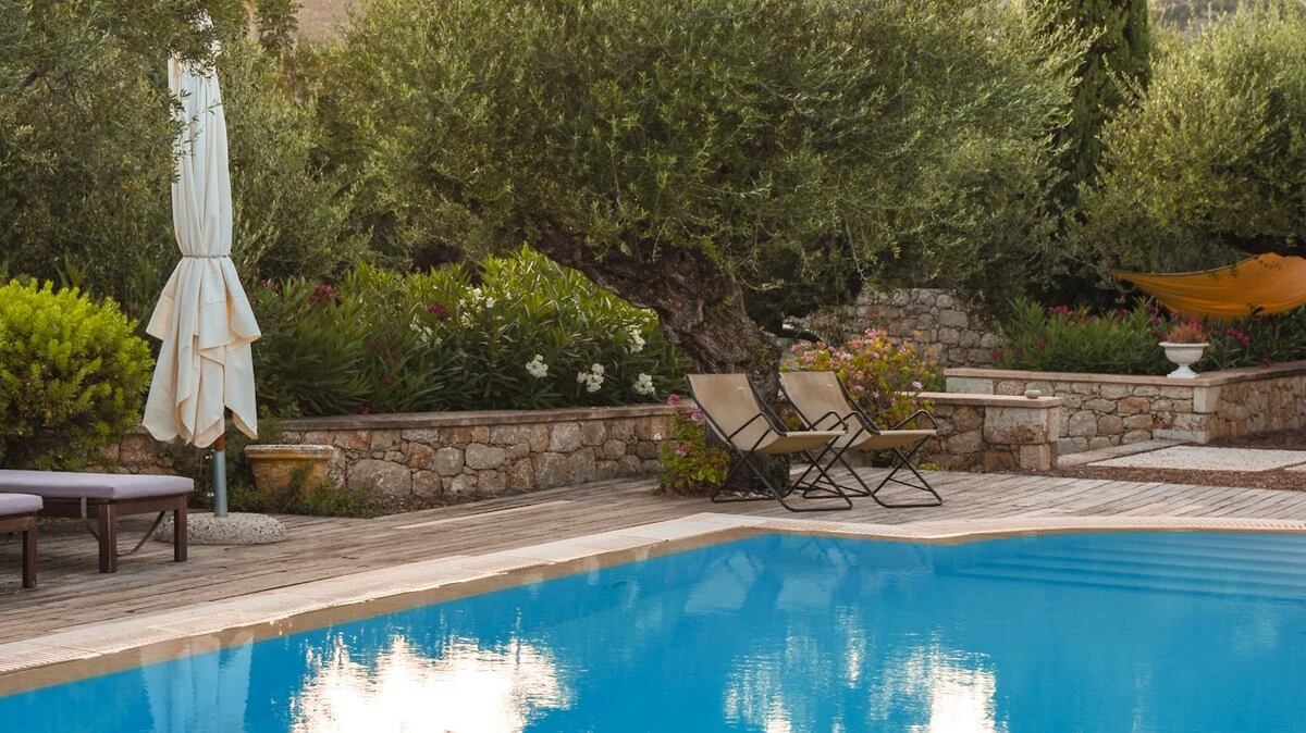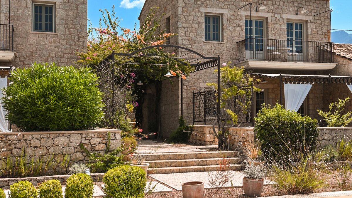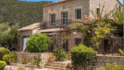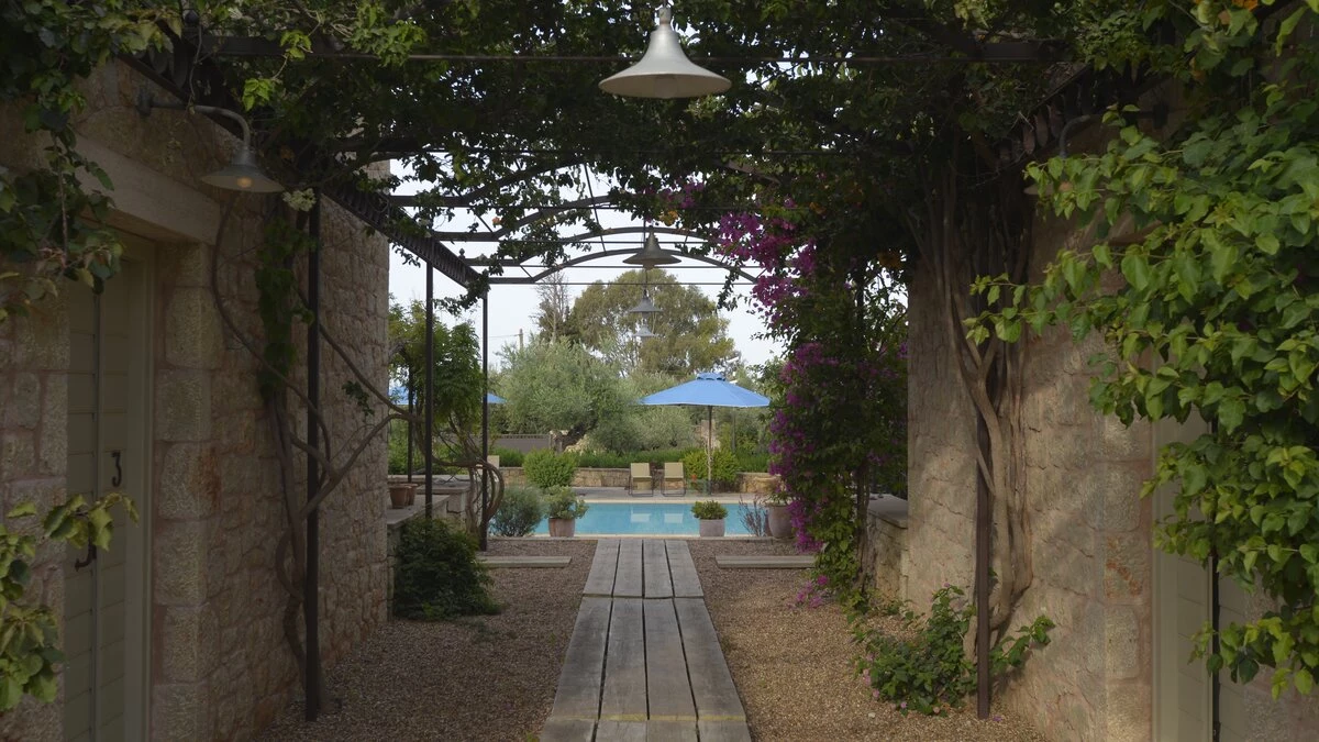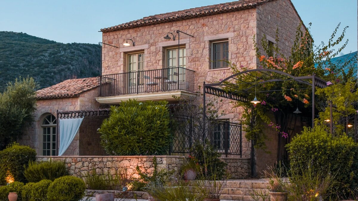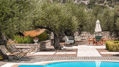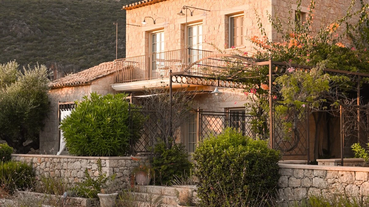 With its history dating back to Homeric times, its setting between the sea and the Taygetos slopes perfect for coast and country exploration, and its traditional tavernas sprinkled at the water’s edge, Kardamyli is an idyll for the Grecophile. A ten minute walk from the village centre and just a stroll through the grounds from Ritsa beach, Liodentra encapsulates the timeless charm of the area, while incorporating very contemporary comforts. The matching main villas, Ena and Thio (‘One’ and ‘Two’), are furnished individually, elegantly blending comfortable sofas and cool-toned décor with character and colour in Persian rugs and Swedish dowry chests.Each has a kitchen, living room and double bedroom on the ground floor, a sitting area and twin bedroom above, and a timber decked al fresco dining terrace overlooking the twelve metre swimming pool. The adjacent annexe offers privacy for the fifth en suite bedroom, and all are air-conditioned. Perfect for two families or a group of friends, excellent service is a hallmark here.