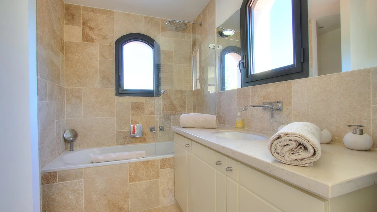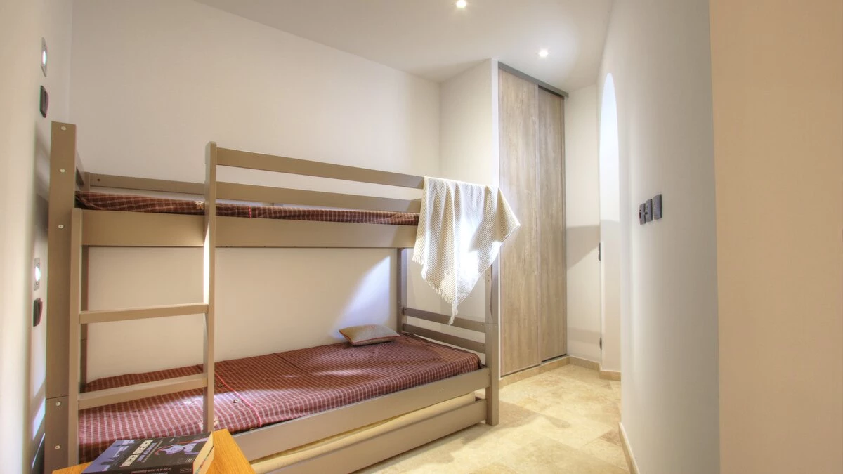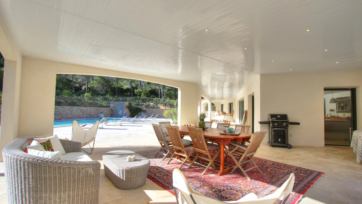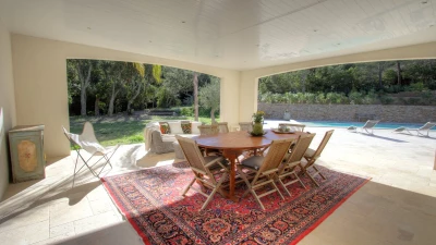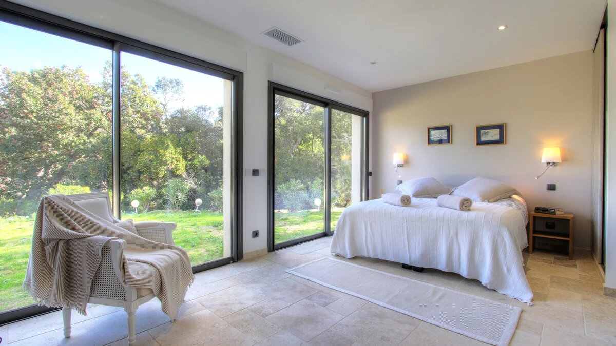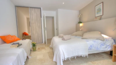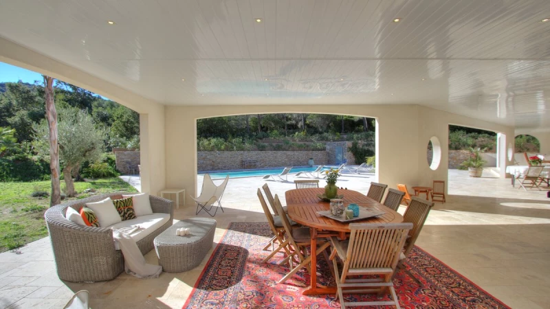 Located in a renowned private estate surrounded by pine forests on the Cap Benat, this modern newly built villa is nestled amongst a Mediterranean garden complete with boules pitch. An inviting entrance hall leads into the main open plan living area with a sleek, modern kitchen and a dining and sitting area complete with fireplace for colder evenings. The property has been beautifully decorated, with neutral contemporary interiors combined with carefully selected pieces of furniture, and quirky touches throughout the living space. Glass sliding doors blur the distinction between outside and inside areas, and allow access to the spacious covered terrace complete with gas barbeque, dining table and a choice of seating area, all overlooking the large swimming pool. On the same floor there are three light and airy twin bedrooms, two with en suite bathrooms, and a children’s room with bunk beds. All twin bedrooms can be made up as double bedrooms on request. On the first floor there are two double or twin bedrooms with en suites and sliding glass doors out onto the balcony. The estate boasts shared tennis courts and a private beach only 750m from the property. The shops and restaurants of charming Bormes-les-Mimosas are just 8km away, and glitzy St. Tropez is within 45km of the estate, with its exclusive shops, restaurants, night life and famous harbour.