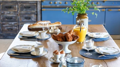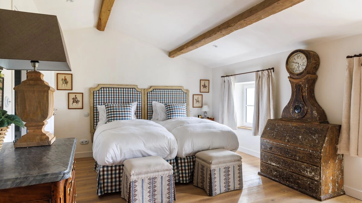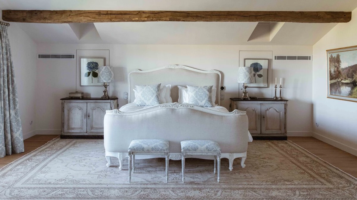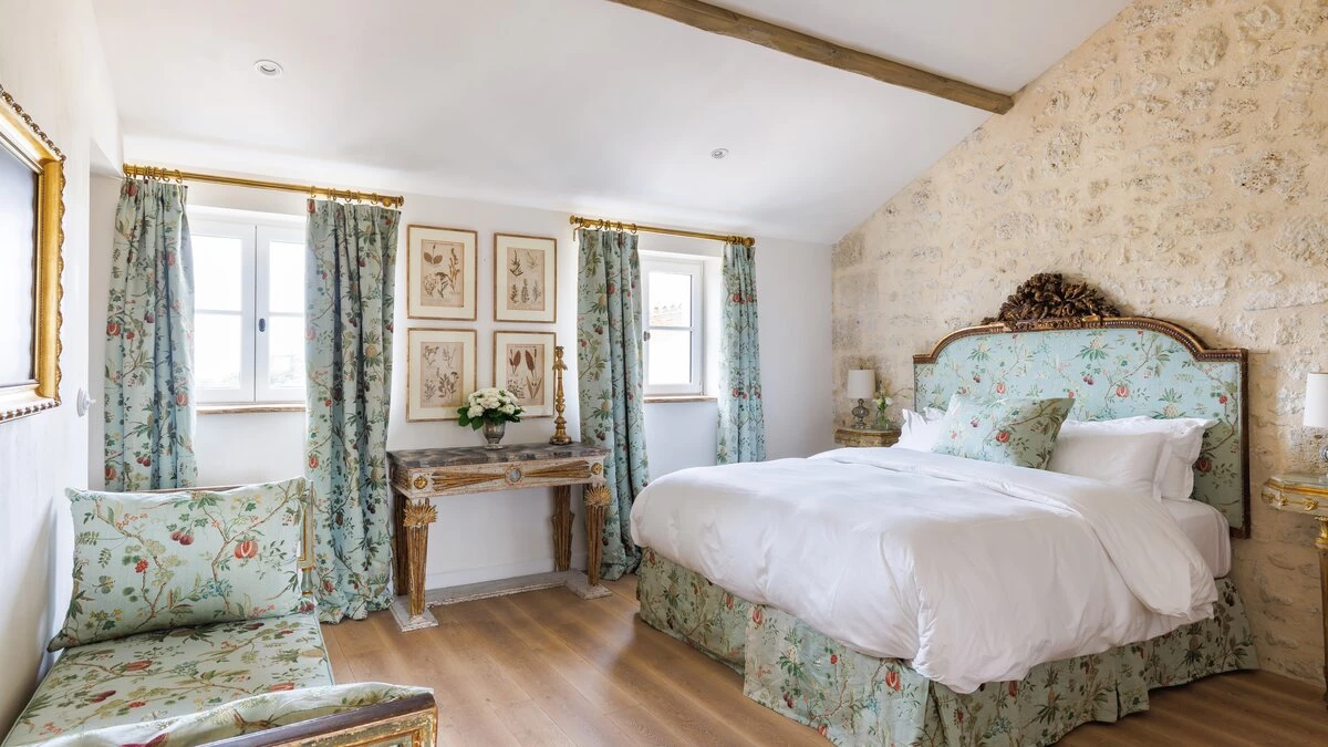 Maison Emilion’s interiors combine rustic charm with refined simplicity. Exposed stone walls and wooden beams give a nod to the villa’s farmhouse heritage, whilst framing the communal areas, including a grand salon, perfect for unwinding after a day of exploration. Each bedroom is uniquely styled with soft furnishings and en suite bathrooms, coupled with calming views over the courtyards or surrounding vineyards. The open-plan kitchen is as functional as it is welcoming, flowing seamlessly into the dining area where meals can be shared against a pretty Bordelais backdrop. With chef service included, guests can expect an array of culinary delights, such as private dinners and cooking classes. For those who prefer al fresco dining, the terrace provides an enchanting space under the stars, complete with a barbecue area for long summer evenings.