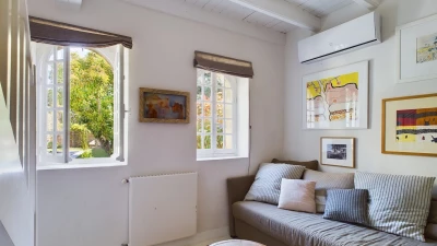 Outside, the spacious terrace offers a variety of spots to unwind, whether you prefer sunbathing by the pool or dining al fresco in the shade. The private swimming pool provides a refreshing escape during warm days, while the well-manicured garden surrounds you with vibrant flowers and lush greenery. Sun loungers and outdoor seating create perfect relaxation zones, and a barbecue area is available for outdoor cooking and entertaining.