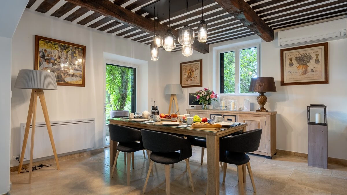 Just five minutes away, L’Isle-sur-la-Sorgue invites you to wander its riverside cafés and browse one of Provence’s largest markets every Thursday and Sunday, a feast of fresh produce, flowers and artisanal goods. For food lovers, the Michelin-starred Le Vivier is also only five minutes from your door, serving refined Provençal cuisine on the banks of the Sorgue. Wine enthusiasts can venture 40 minutes to Châteauneuf-du-Pape for tastings among historic vineyards, while outdoor adventurers will love kayaking from Fontaine-de-Vaucluse, just 15 minutes away, gliding along the crystal-clear Sorgue beneath towering limestone cliffs.