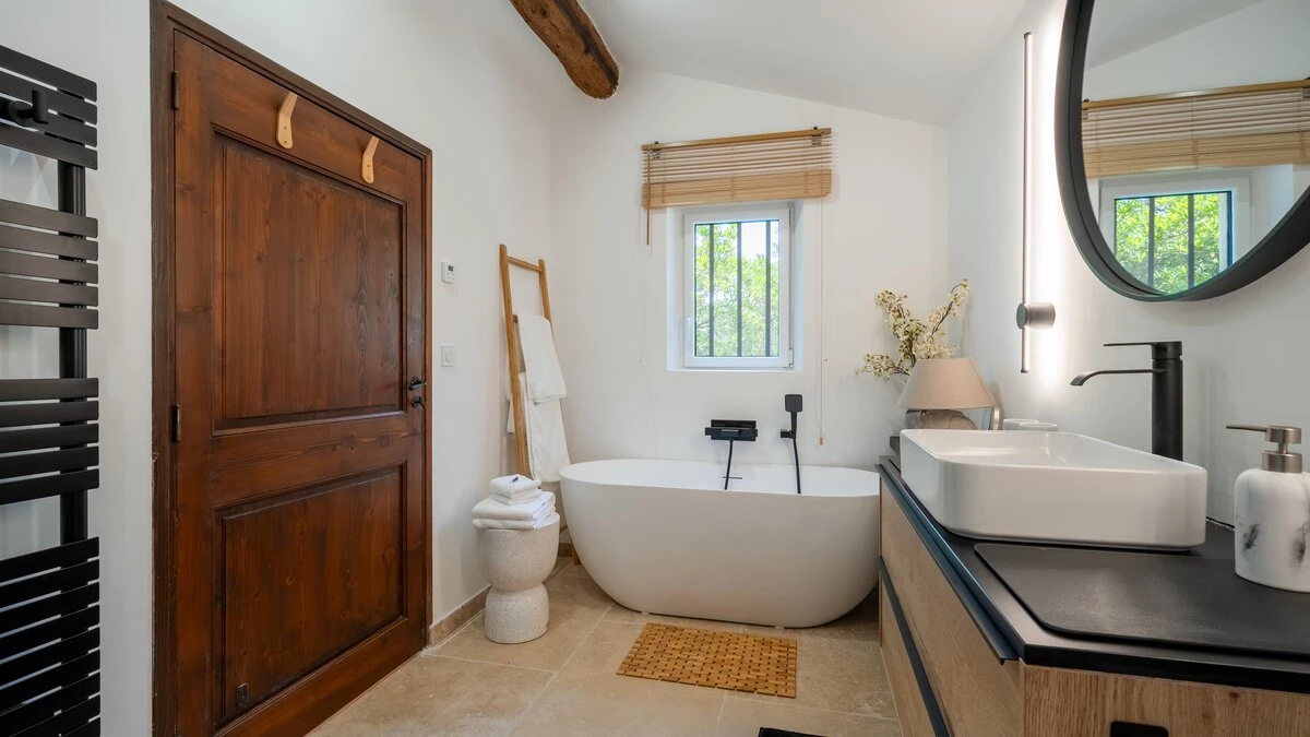 Tucked into a peaceful hillside near L’Isle-sur-la-Sorgue, Maison L’Hirondelle is a beautifully restored villa that blends rustic authenticity with understated luxury. Designed for relaxed living, it’s an ideal retreat for families or small groups looking to explore the charm of Provence while enjoying the comforts of a well appointed home. With sweeping views over olive groves and gardens brimming with lavender and rosemary, the setting is unmistakably Provençal.