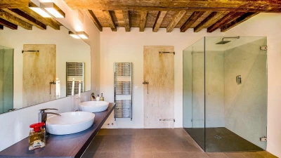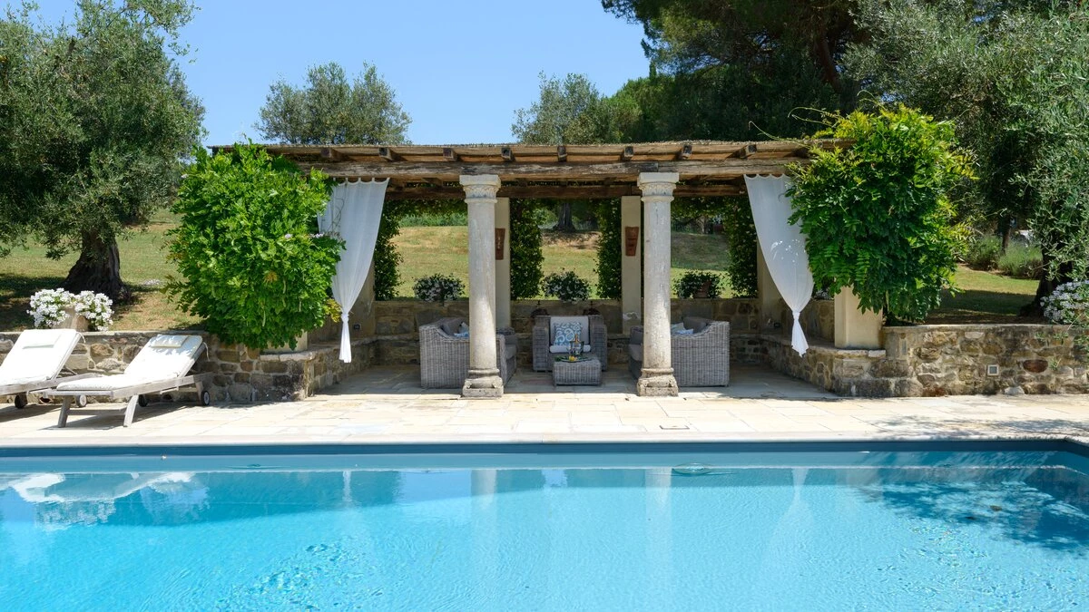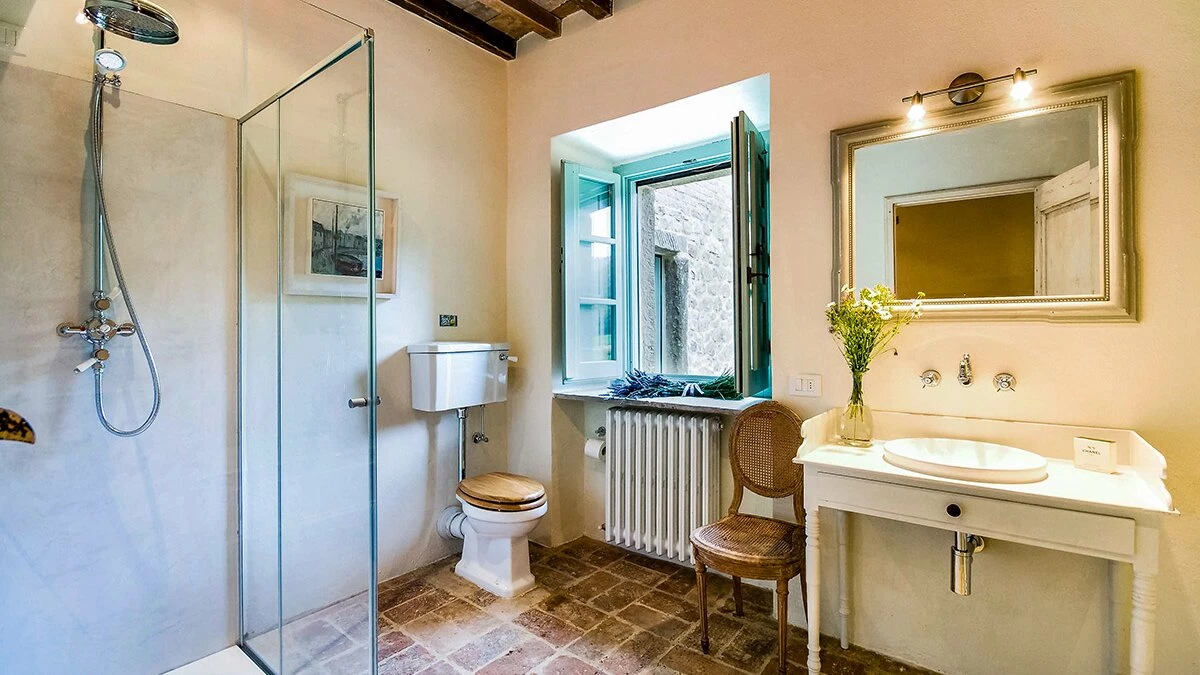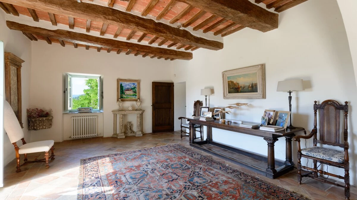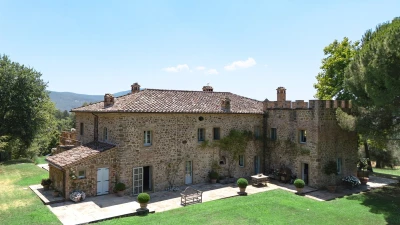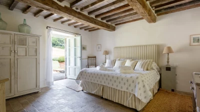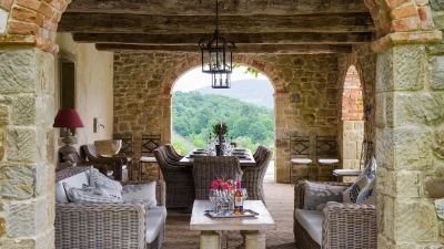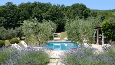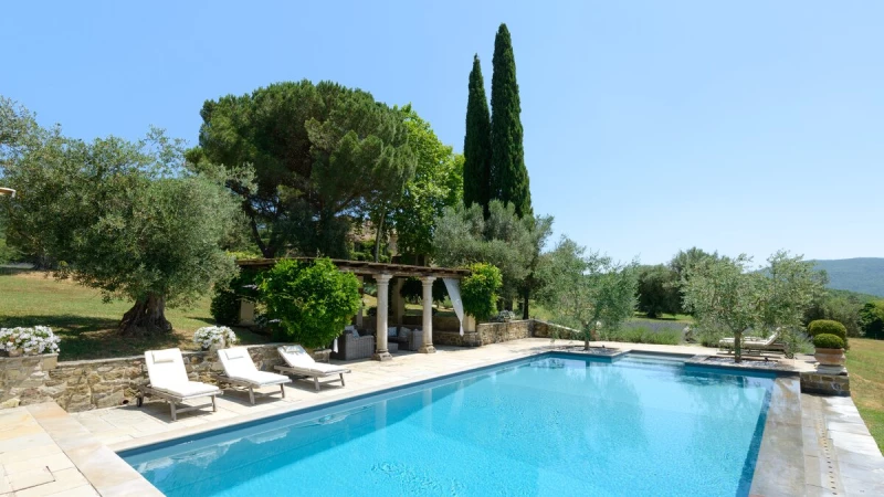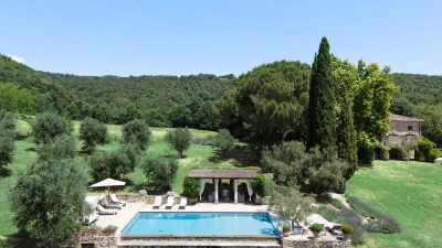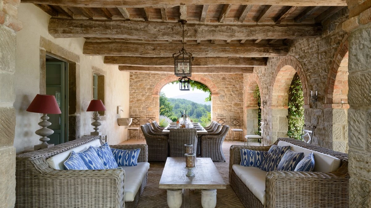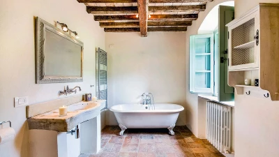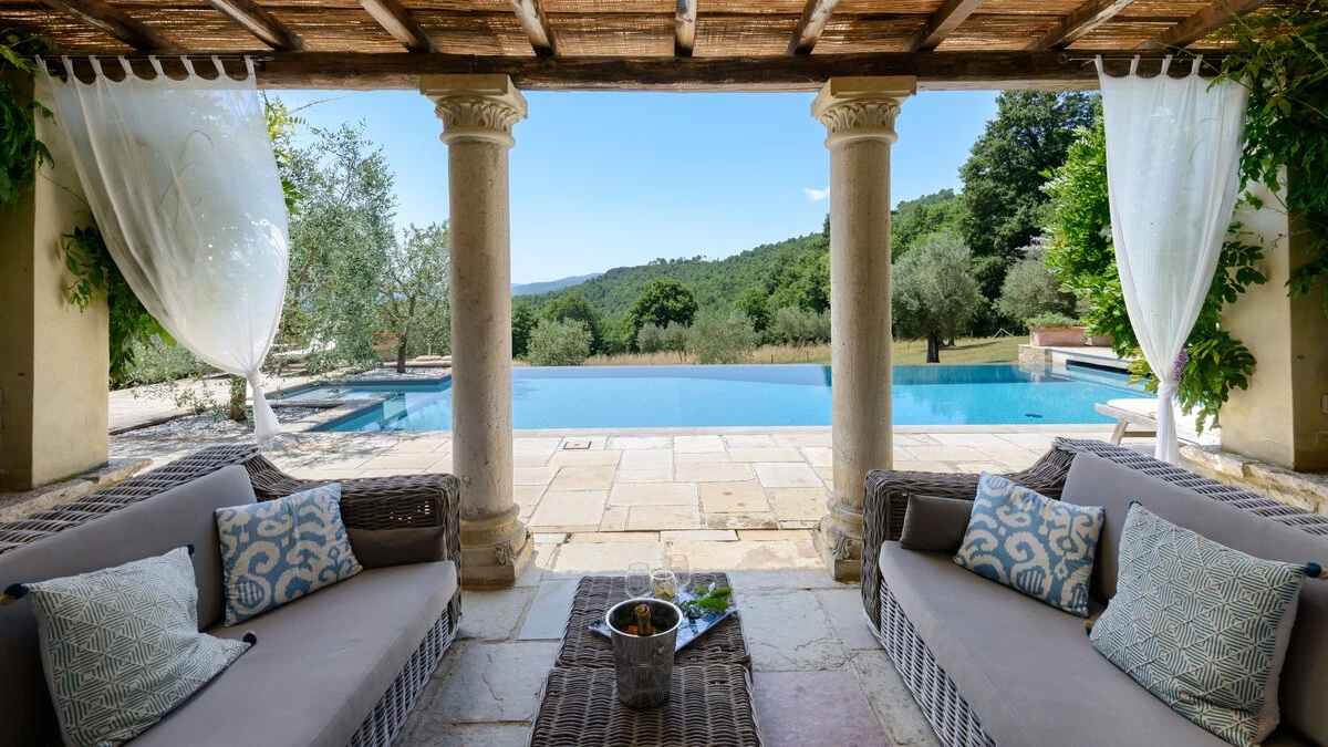 Bedrooms are romantically and individually styled, including four-posters and antique pieces, while bathrooms are fitted with large walk-in showers and roll-top or old marble baths. Providing the perfect setting for indoor/outdoor living, the house has a wonderful loggia for al fresco sitting and dining. And in the gardens, a pathway through pergola arches leads to the infinity pool and striking poolside gazebo. A well at the top of the meadow once stood in a monastery in France, as did the glorious archway near the swimming pool. Nestled in acres of privacy, the villa is within very easy reach of Castello di Reschio, now known as one of central Italy's finest resorts with restaurant open to external guests. The villa is also 8km from shops and restaurants in Mercatale and 12km from Umbertide.