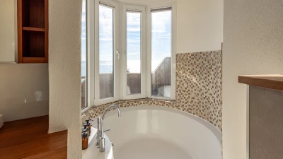 The villa’s outdoor space is where it truly shines. The infinity style swimming pool appears to merge with the sea, while the jacuzzi provides the ideal spot for unwinding after a day exploring the coast. A shaded dining terrace and built-in barbecue make al fresco living irresistible, with the Atlantic horizon providing a mesmerising backdrop. Sun loungers and landscaped gardens complete the picture of contemporary coastal luxury.