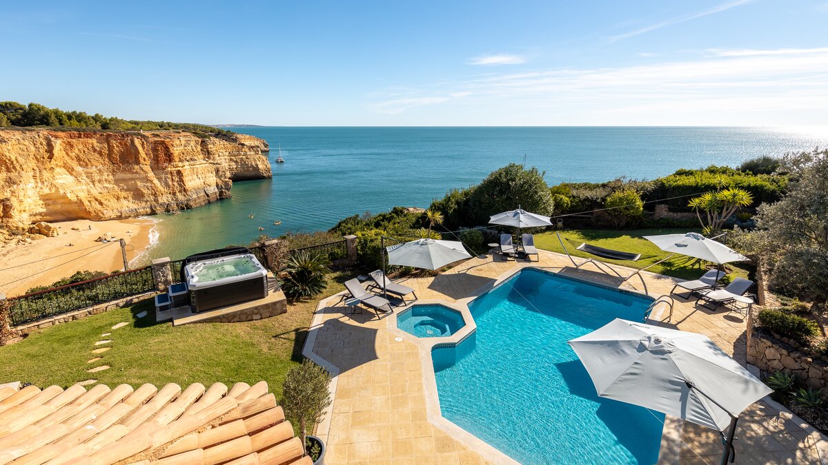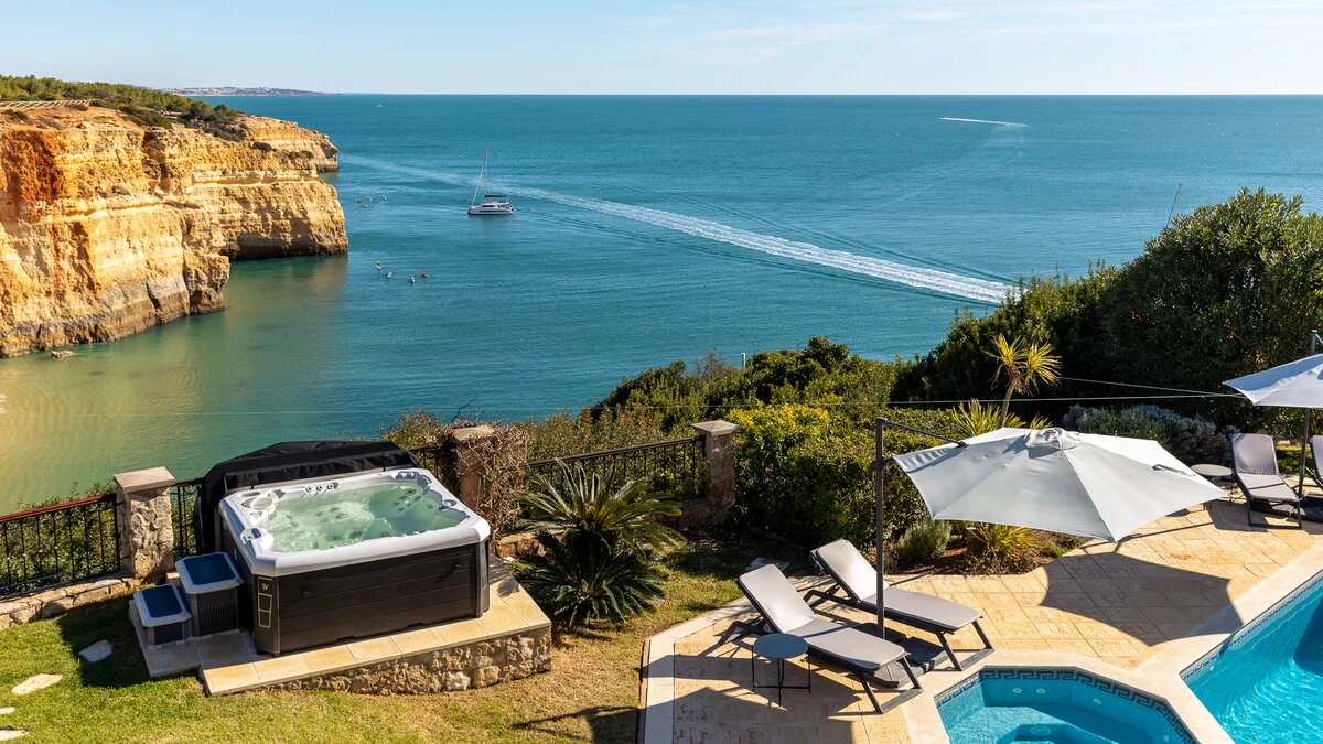 Perched above Portugal’s dramatic Benagil coastline, this contemporary Algarve villa offers a seamless blend of style, comfort and breathtaking sea views.