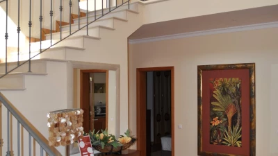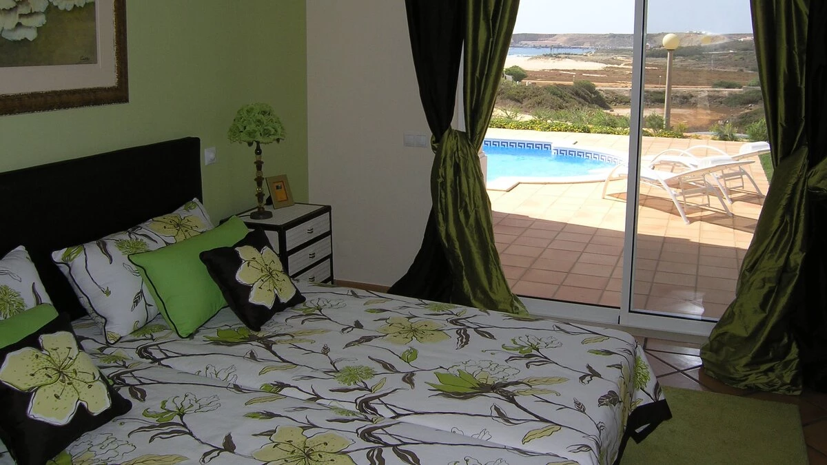 This very well-appointed house, in a great location facing the beach, is perfect for a villa holiday with all the conveniences of a resort. The large living/dining room is comfortably furnished, with several sets of glass doors allowing the light in and opening out to the pool. The kitchen is generously sized and well-equipped, while a shower room and three twin bedrooms, two en suites, can also be found on this floor. The terrace can be accessed from all bedrooms. Upstairs, a double bedroom occupies the first floor featuring a convenient en suite with bath and separate shower. This bedroom has direct access to a private furnished terrace, a great spot to take in the views over a morning coffee or evening glass of wine. Outside, there is a covered dining area with barbecue, perfect for al fresco dining, and a private pool which can be fenced on request, ideal for families with young children. If you can bear to leave the beautiful resort, then the town of Sagres is only 2km away.