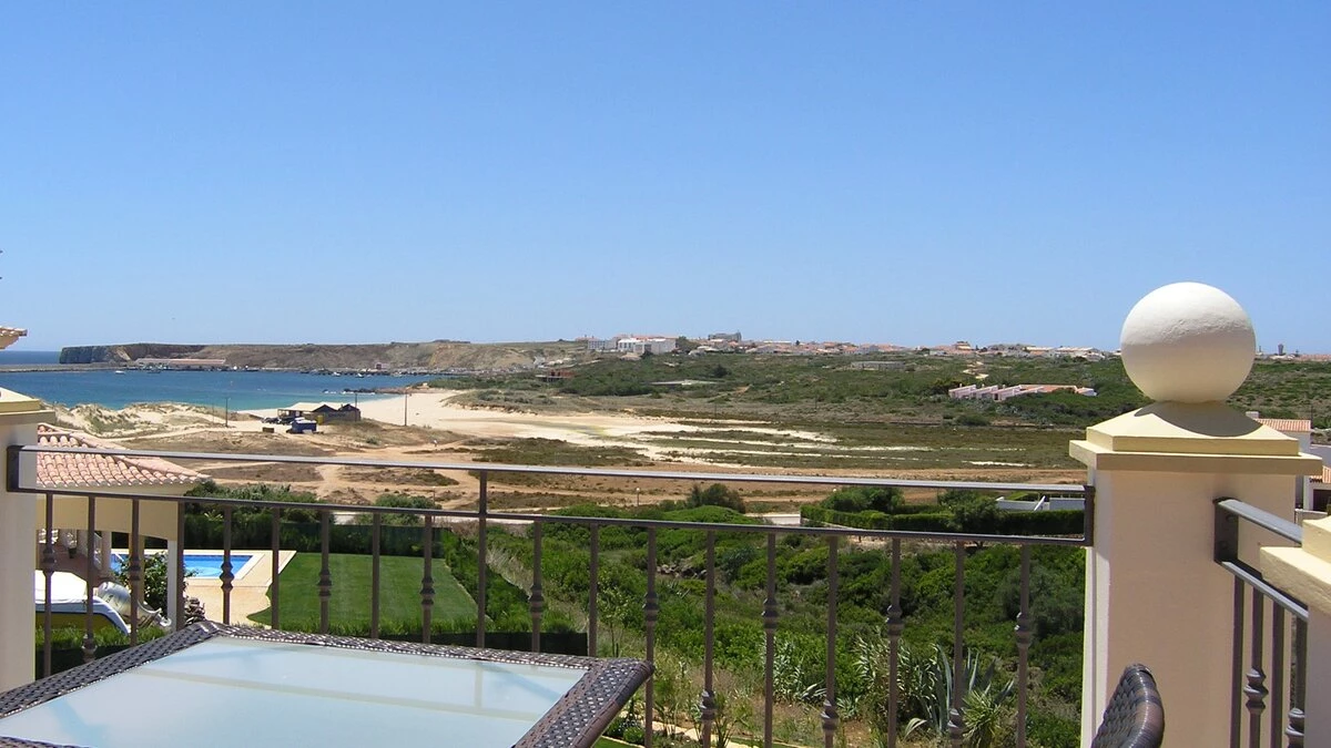 This pretty pink villa commands lovely views of the sea as well as the nearby coastal town of Sagres... -