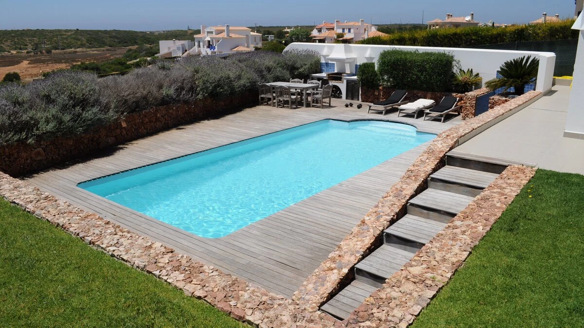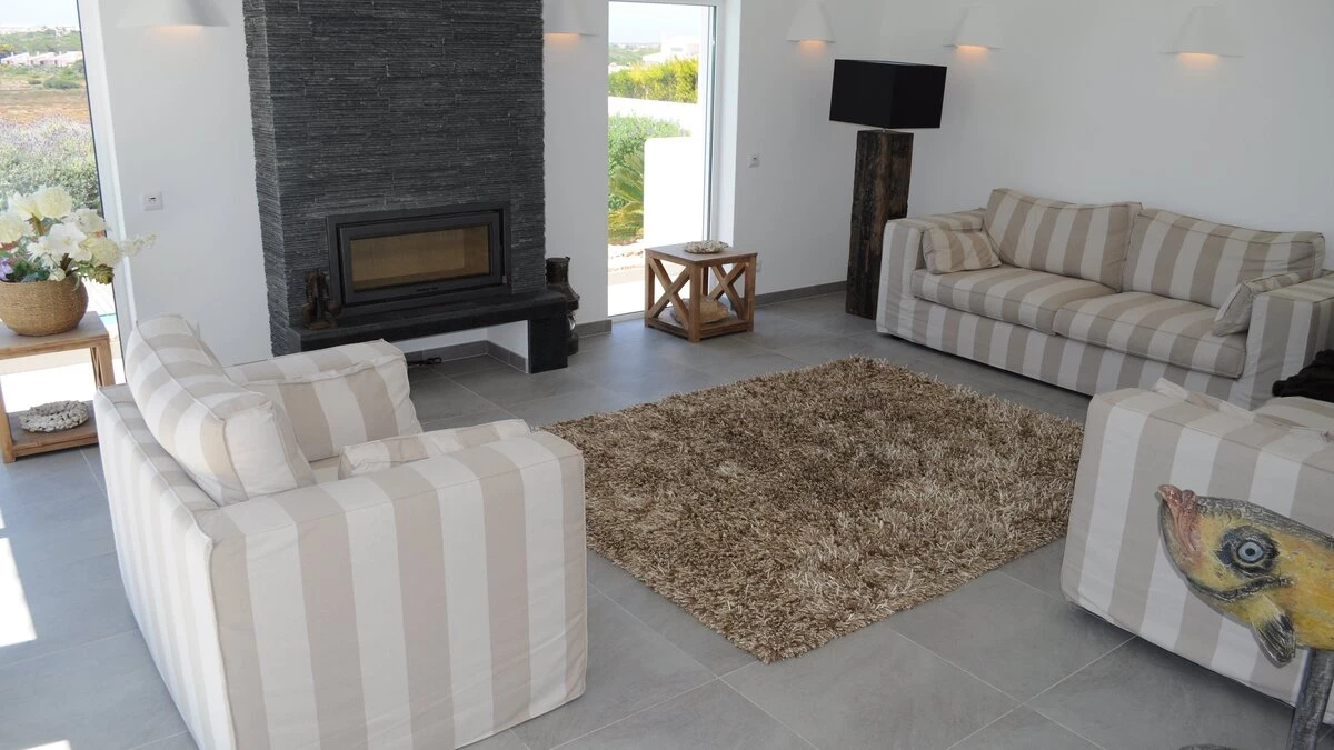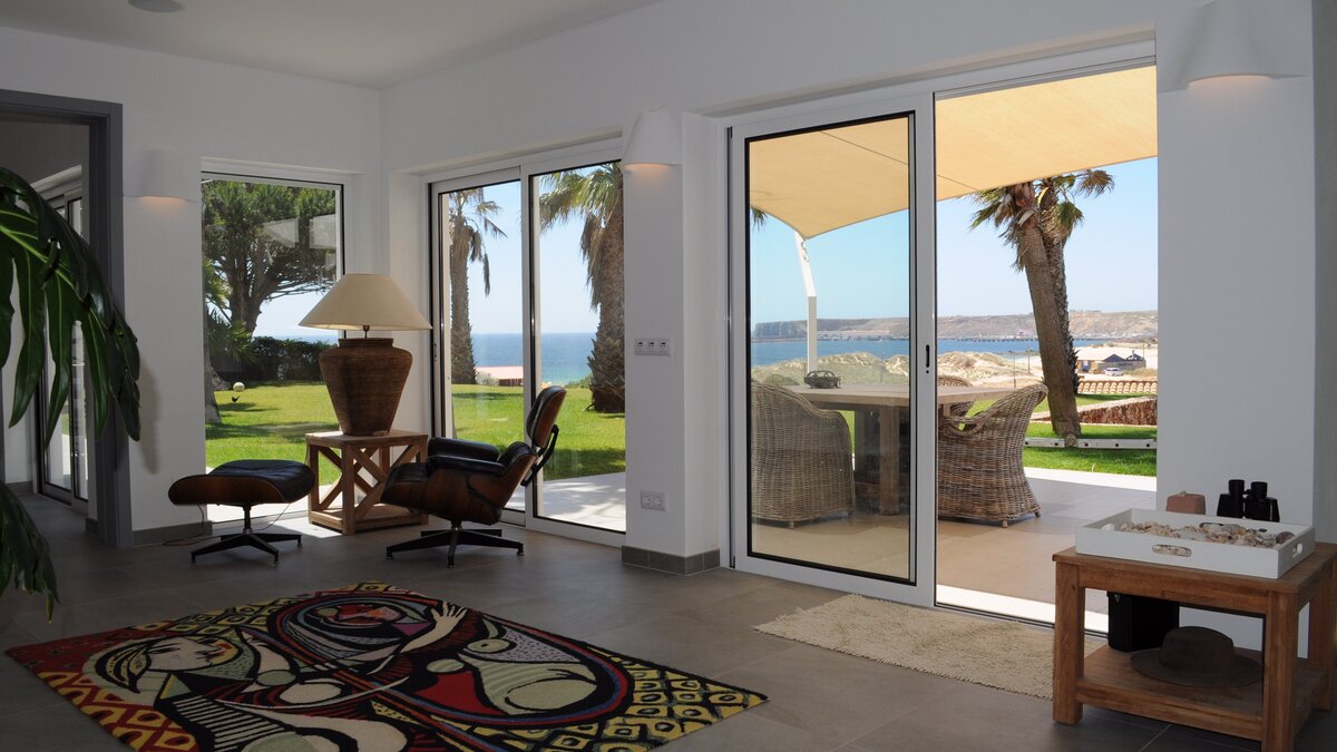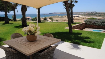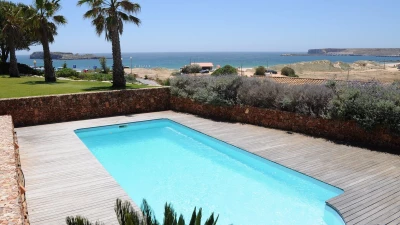 This pretty pink villa commands lovely views of the sea as well as the nearby coastal town of Sagres... -