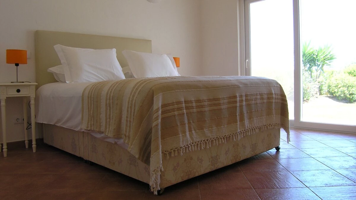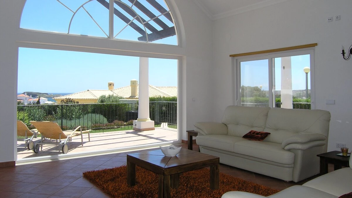 This pretty pink villa commands lovely views of the sea as well as the nearby coastal town of Sagres... -