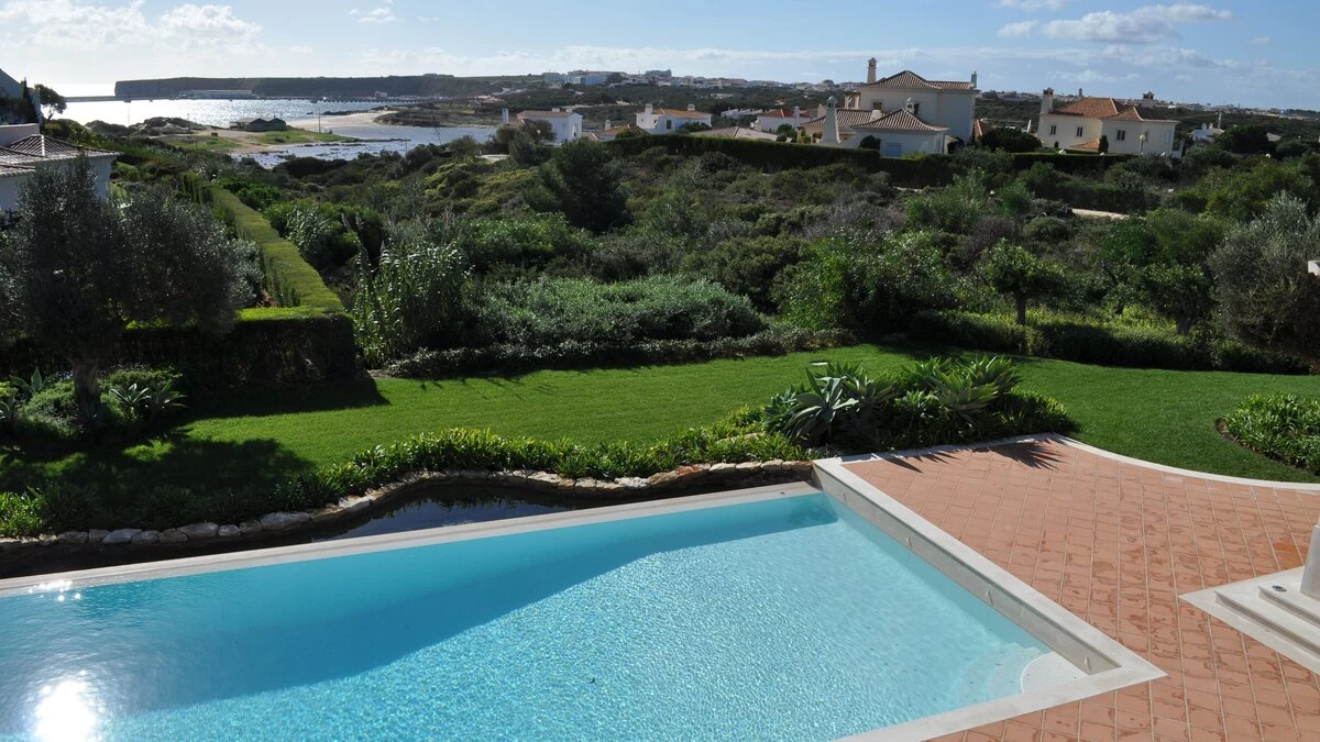This pretty pink villa commands lovely views of the sea as well as the nearby coastal town of Sagres... -