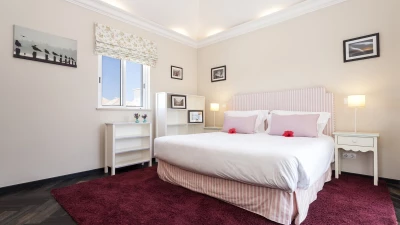 This pretty pink villa commands lovely views of the sea as well as the nearby coastal town of Sagres... -