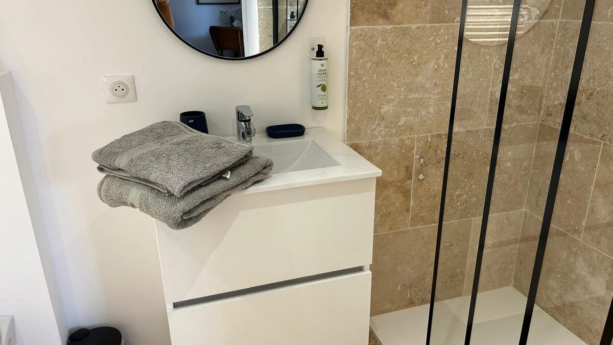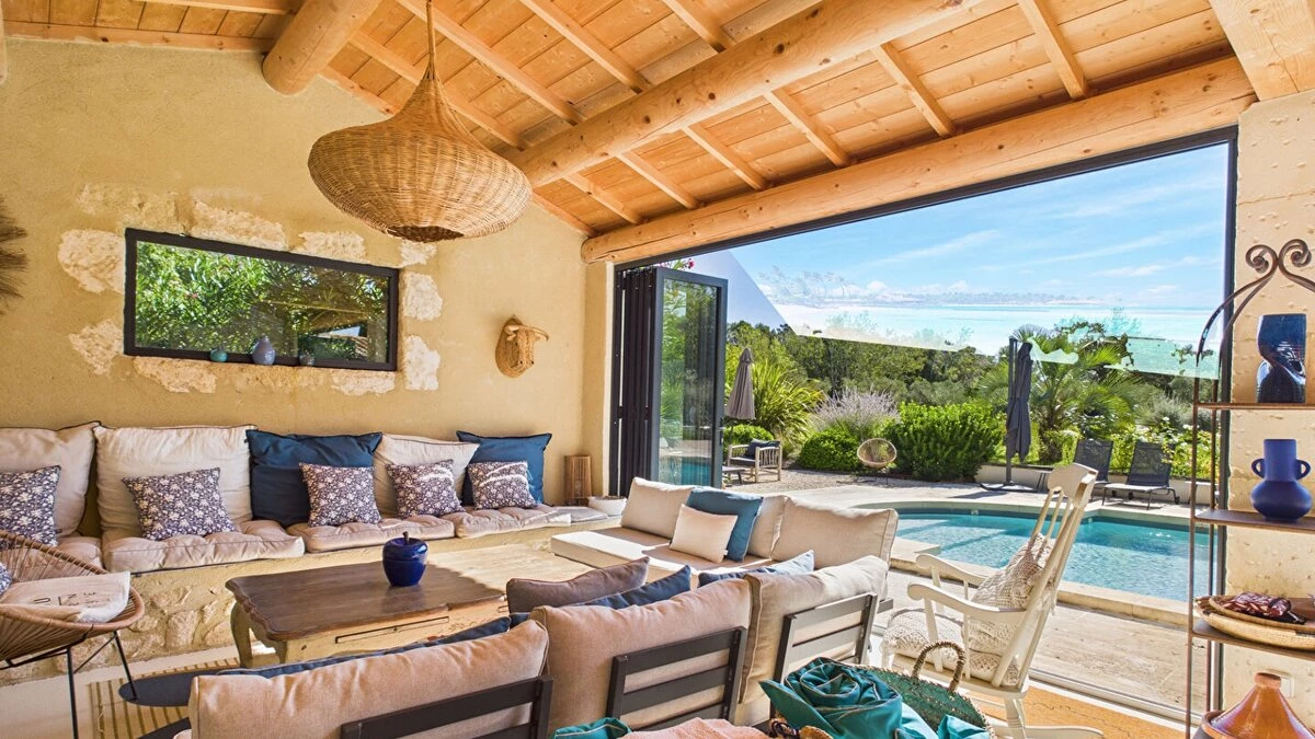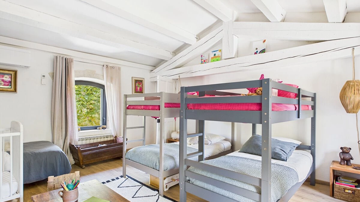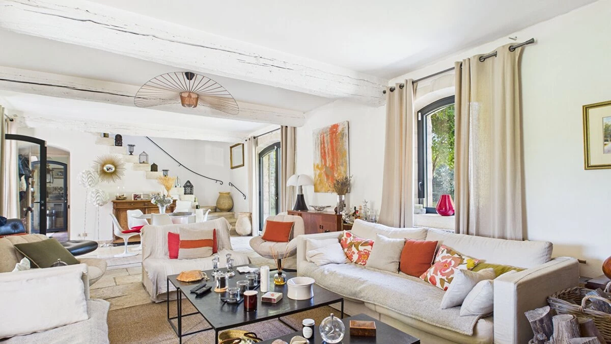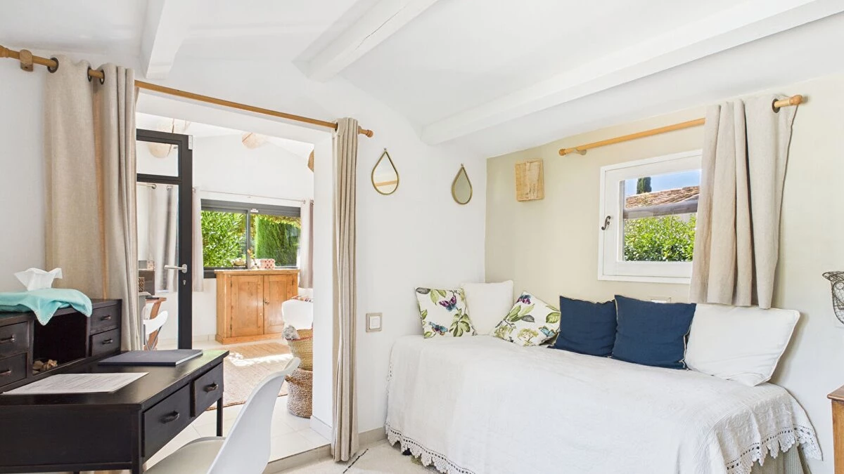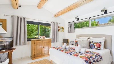 The interior is thoughtfully arranged, with décor that blends timeless Provençal style with contemporary touches. Airy living spaces, a fully equipped kitchen, and quiet corners for reading or relaxing ensure both comfort and flexibility during your stay.