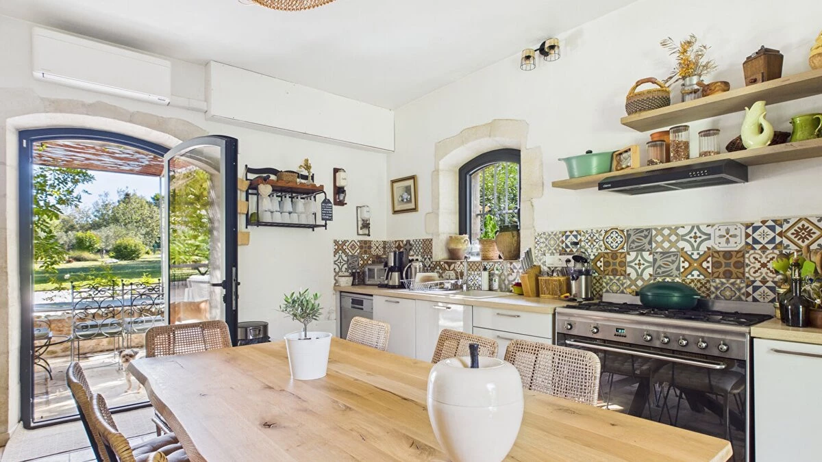 Mas Bucolic is a Provençal farmhouse set in the heart of Maussane-les-Alpilles, surrounded by olive groves and rolling hills. With seven bedrooms and spacious living areas, it combines traditional character with modern comfort, making it ideal for families or groups of friends.