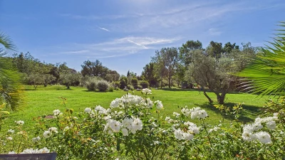 Outside, the 20,000 m² landscaped grounds provide a peaceful retreat. Stroll under ancient olive trees, enjoy meals on the terrace, or spend the day by the heated saltwater pool, open year-round. The property’s scale and layout offer space to gather together while also allowing privacy when needed.