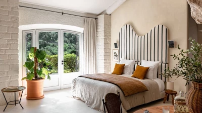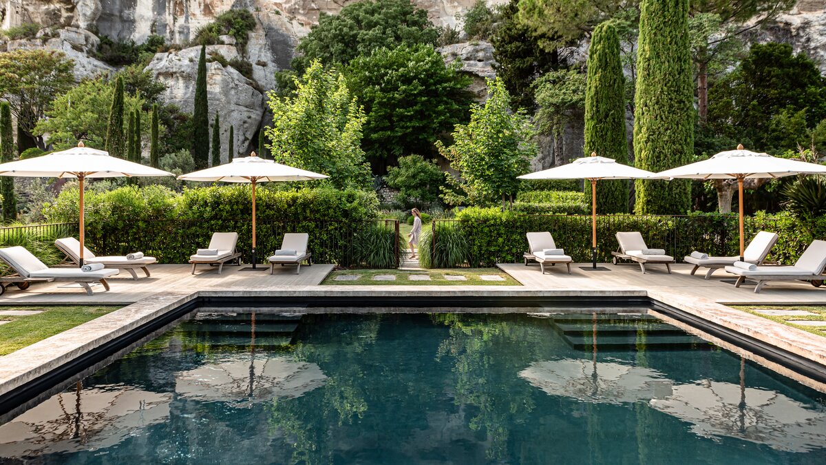 Mas de la Pépite is an utterly breathtaking property in Provence, located in the heart of the Alpilles. The villa is set in the charming village of Les Baux-de-Provence, one of France's most beautiful villages, and is an ideal starting point from which to explore the area. What makes Mas de la Pépite so unique is its architectural design, built into a rock face with striking troglodyte rooms carved into the cliff. Completely renovated in 2022, the villa has become an idyllic and characterful holiday home with artistic interiors. Across three buildings, guests can enjoy eight spacious and stylish double-bed suites, including two stunning bedrooms built into the rock. Alongside these are a bright and airy living space, stylish dining area, open plan kitchen and a fabulous lounge and bar area. There is also a fantastic, well-equipped fitness room, perfect for a wellness retreat.