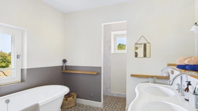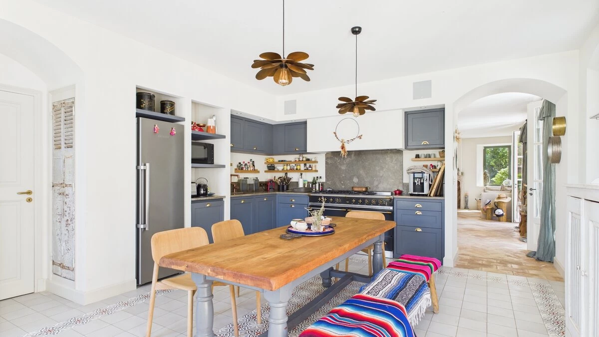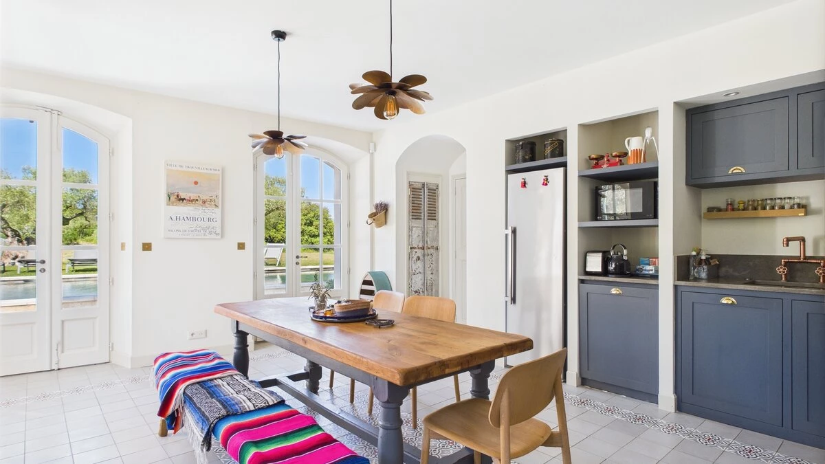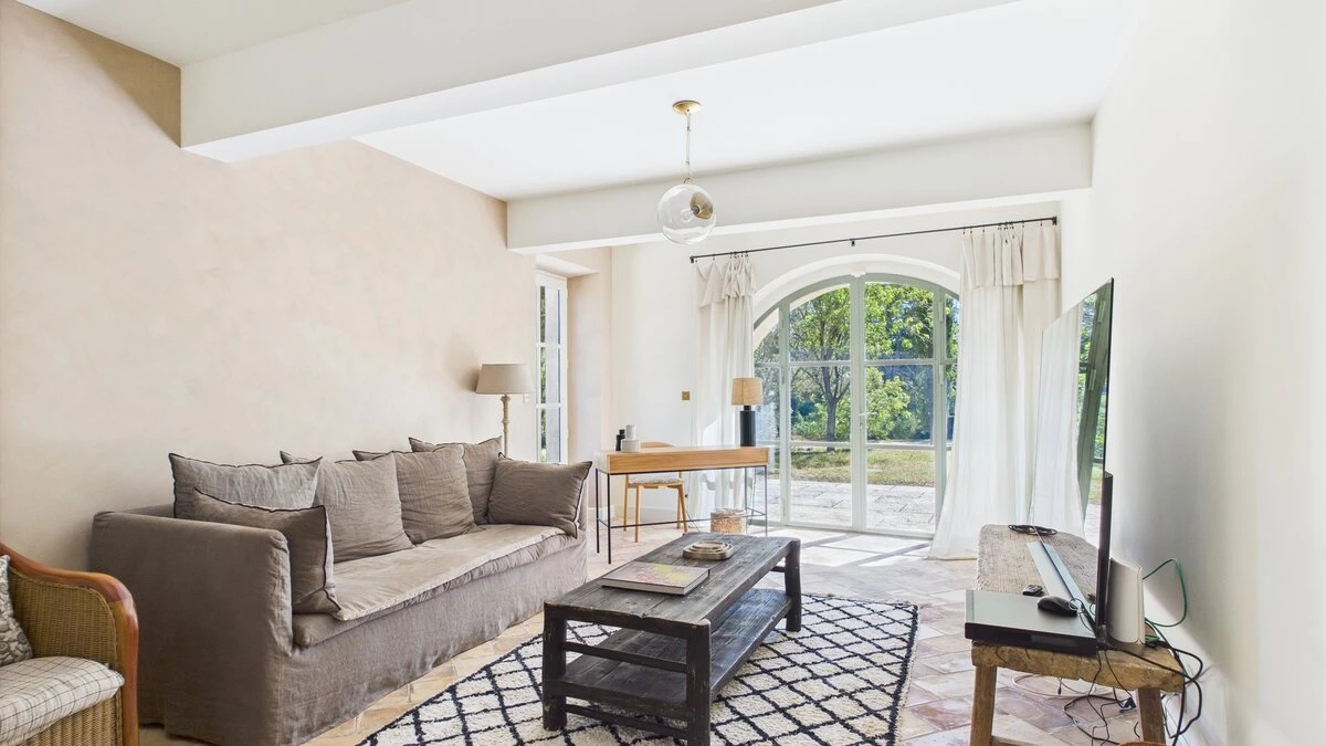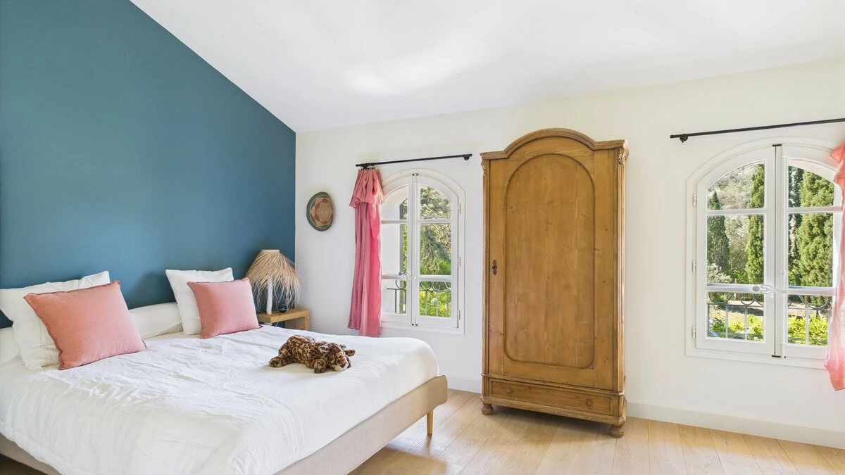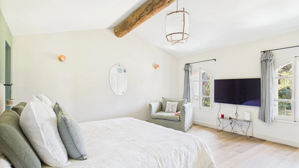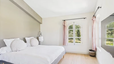 This villa is pleasantly provincial, a rustic property with a contemporary twist. Adorned with sage shutters on every window, the villa overlooks Provence’s lively green landscape. Inside the villa is bright and airy, the decor is a gorgeous combination of modern and Arcadian. The navy-toned kitchen/dining area is equipped with all the essentials, whilst the living and TV rooms offer luxurious spaces to relax. Each ground floor area includes an opening to the well-manicured gardens, where guests can discover an array of grand twisting trees and a private pool equipped with heating.