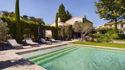 This Provençal farmhouse in the heart of Paradou sits just steps from charming shops and restaurants, offering a harmonious blend of traditional character and modern comfort. Set within an enchanting natural backdrop, it invites guests to enjoy village life while relaxing in spacious, beautifully appointed interiors.