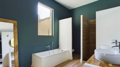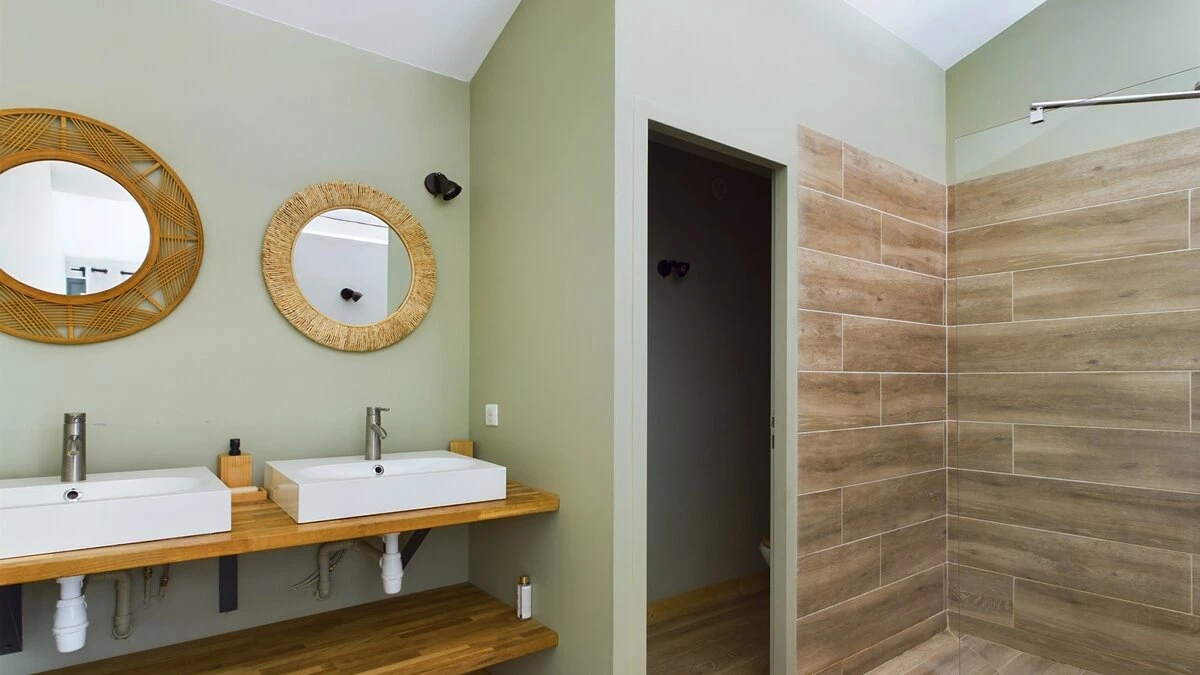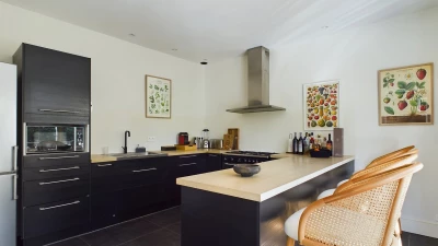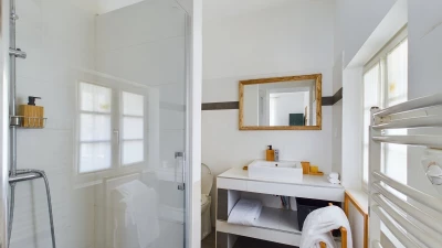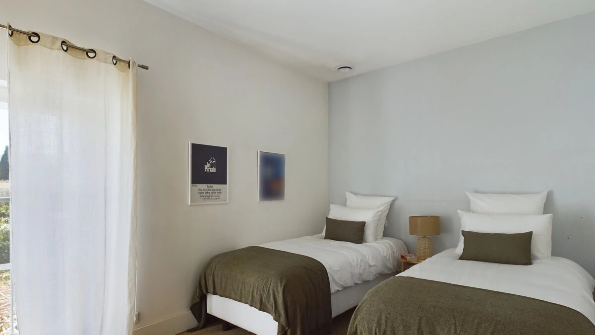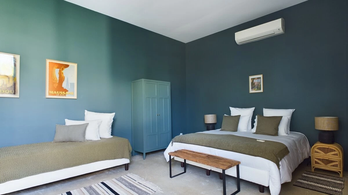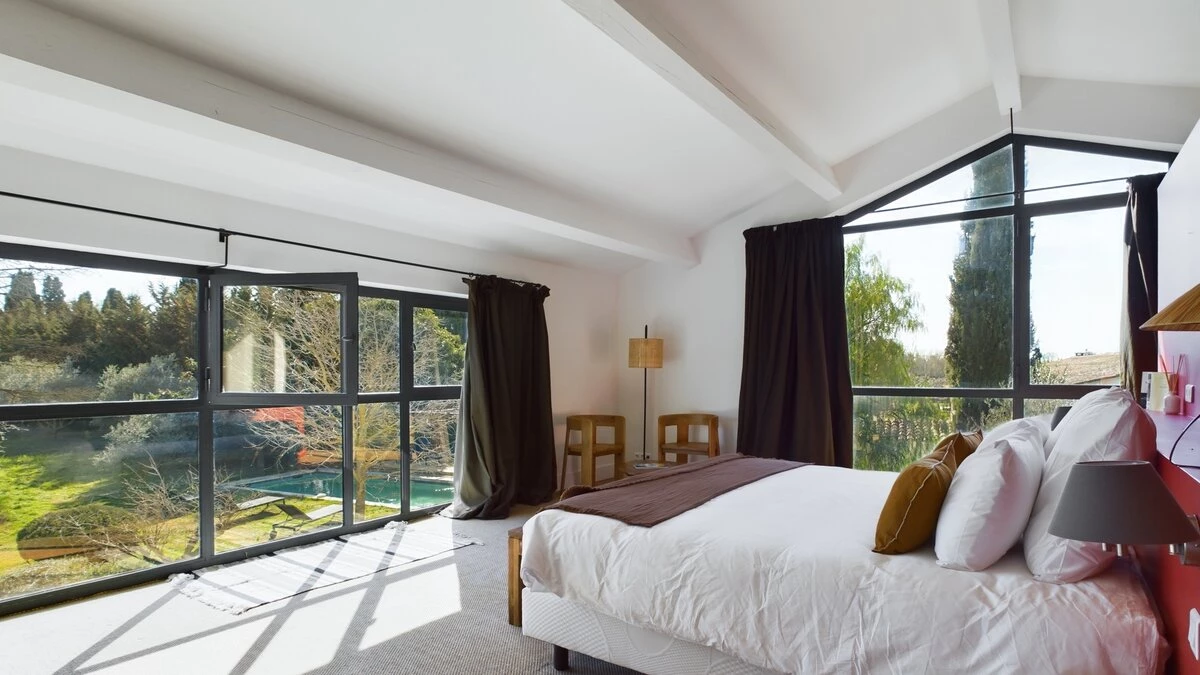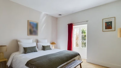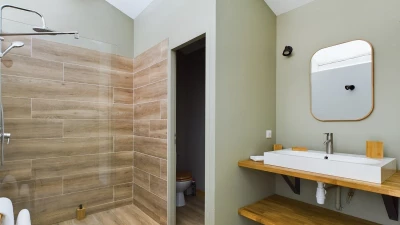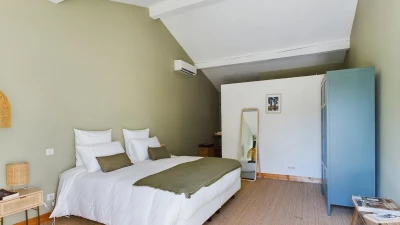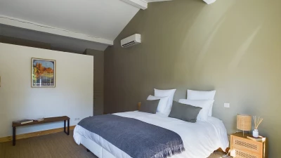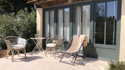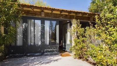 Mas Rosemary’s allure is further enhanced by three charming outhouses, each meticulously renovated to offer versatile living spaces. Two of these delightful outbuildings provide extra privacy for guests, serve as peaceful home offices, or function as creative studios. The third outhouse features a double bedroom with an en suite shower room opening directly onto the garden, creating a secluded retreat for couples or guests seeking their own private corner of Provence. Each outhouse blends effortlessly with the main house and the surrounding natural landscape, ensuring every guest enjoys both comfort and independence.