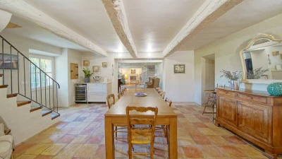 Within easy reach of charming Luberon, Mas Saint Martin enjoys magnificent views over the surrounding Provencal countryside. This imposing property stands out from the hillside with powder-blue shuttered windows, vine clad exteriors and lavender filled lawns. Tiered gardens feature a lush shaded pergola over a long dining table, served by a built in BBQ, and a separate terrace furnished with comfortable seating and parasols for relaxing and enjoying the picturesque views; the infinity pool terrace is equally inviting and perfectly private.