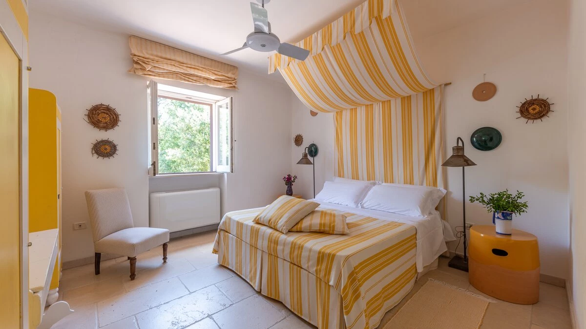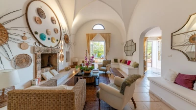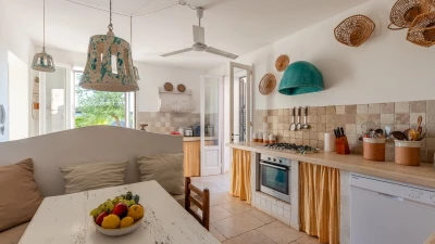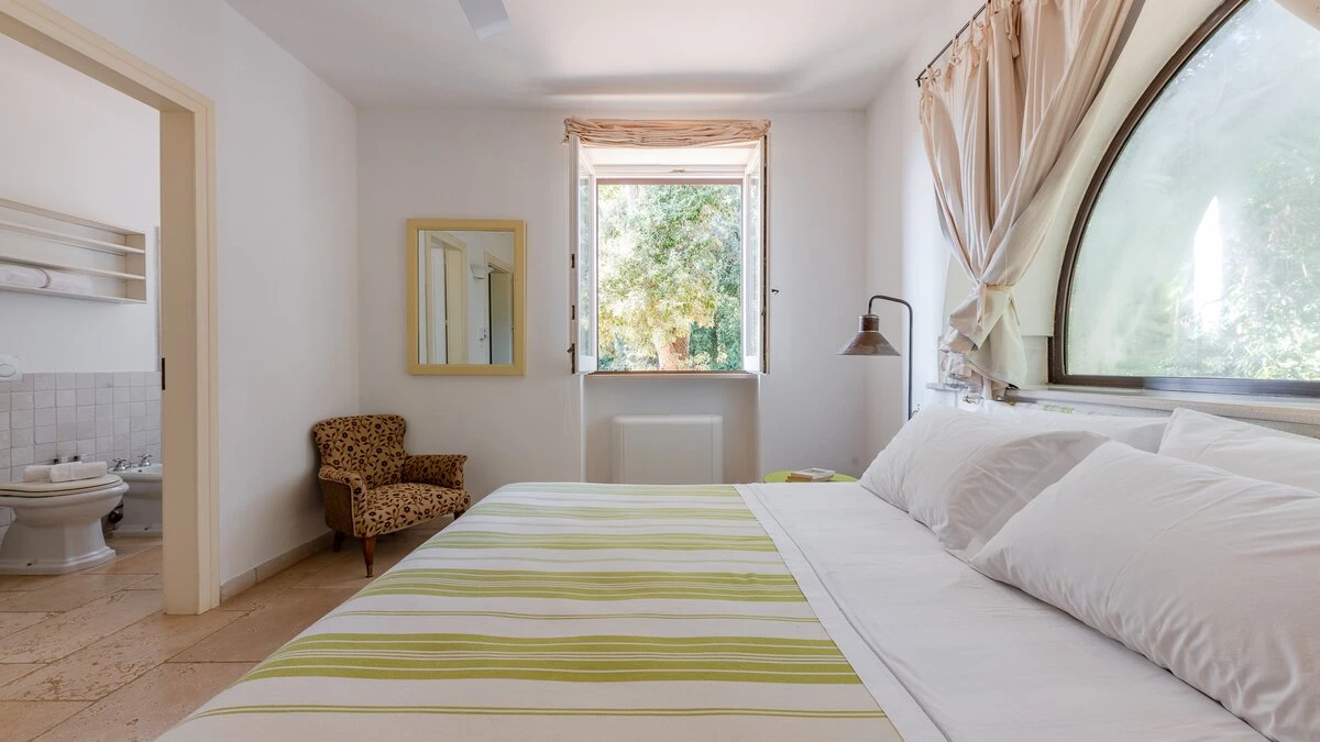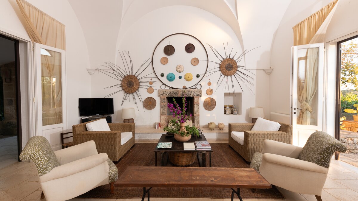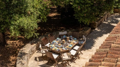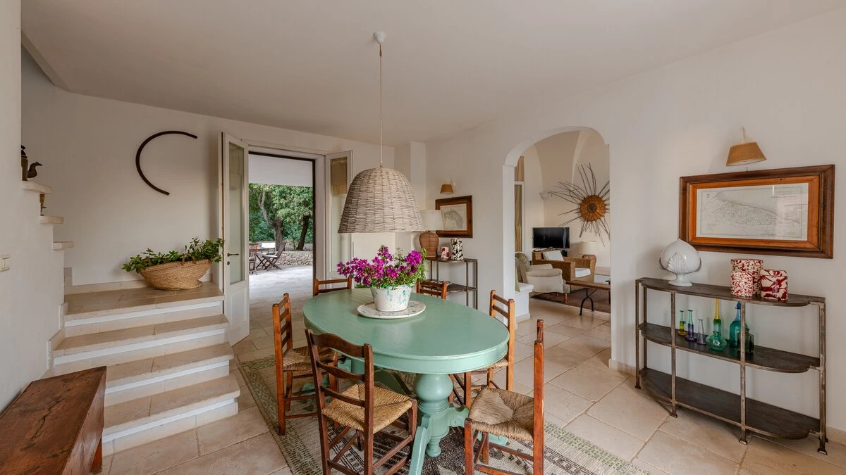 In the gardens there is also a cottage for additional guests, about 30m from the villa. From the front terrace and garden, a stone archway leads through to the pool area with fabulous large pool with ample sunbeds, umbrellas and new pergola (not shown in photographs). There is also a new built in seating, bar area and hammocks placed amongst the oak trees. Very privately positioned, this elegant property is just 1 km from amenities in the local village of Patu. The seaside towns of Torre Vado and Santa Maria di Leuca, with magnificent sandy beaches with clear, gently sloping beaches with crystalline waters and lively beach clubs with bars and restaurants are a very short drive away. Further inexpensive restaurants are in and around picturesque local villages. Day trips and yacht and boat trips can also be organised to explore the beautiful coastline and sea grottoes. We are sure that CV guests will enjoy the convenient location, comfort and privacy of the property and excellent service provided by the long - serving villa staff.