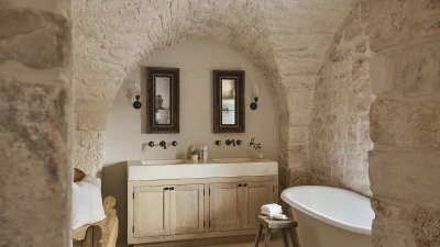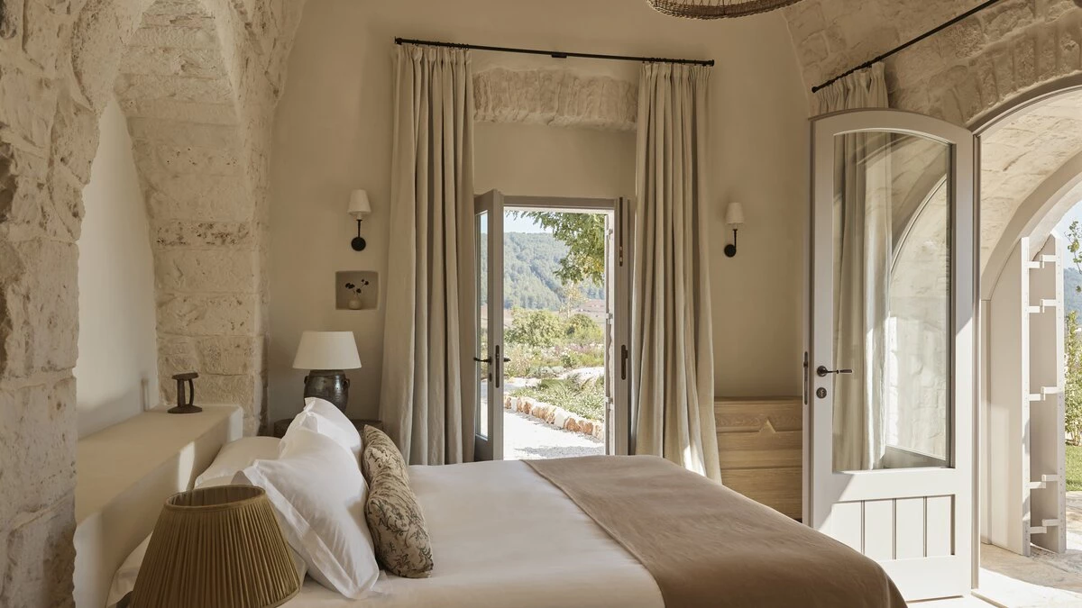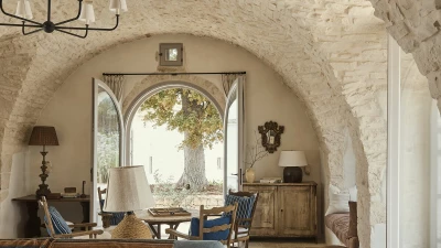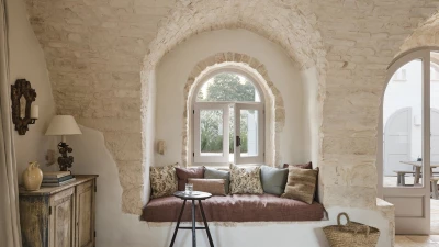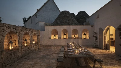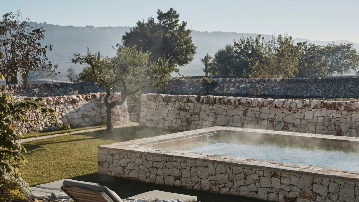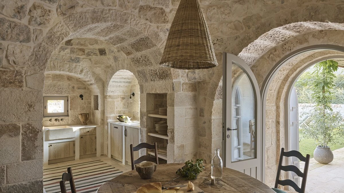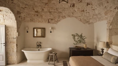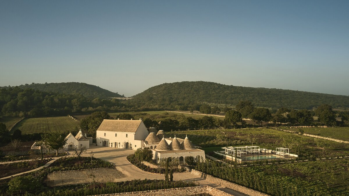 Outside, the three hectares of private walled gardens of the Masseria are accompanied by aromatic plants that embellish the space to incorporate a rich variety of colours, alongside scents found all throughout Italy. The interplay of these elements elevates the ambience of the villa's expansive outdoor dining spaces, suitable for groups of twenty guests, imbuing them with a sense of serene, tranquil sophistication. The villa’s impressive heatable pool is a great way to wind down after an evening meal, alongside the villa being within easy reach of the coast. Nearby, guests can enjoy an authentic Italian dish from one of three restaurants in Cocolicchio, as well as choosing between various dining options in the famous town of Alberobello, known for being home to hundreds of trulli, representative of the region’s architecture that has remained popular since the fourteenth century.