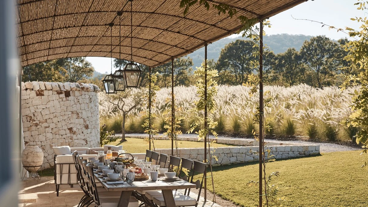 Surrounded by acres of unspoilt land, and with outstanding views of the surrounding Canale Di Pirro valley, Masseria Giardini is a magnificent ten bedroom farmhouse, situated in the heart of Puglia. With a private pool, beautiful gardens with idyllic outdoor dining spots, traditional structures still in place, and plenty of land to roam through and explore, this villa is ideal for families and large groups looking for their next memorable retreat.